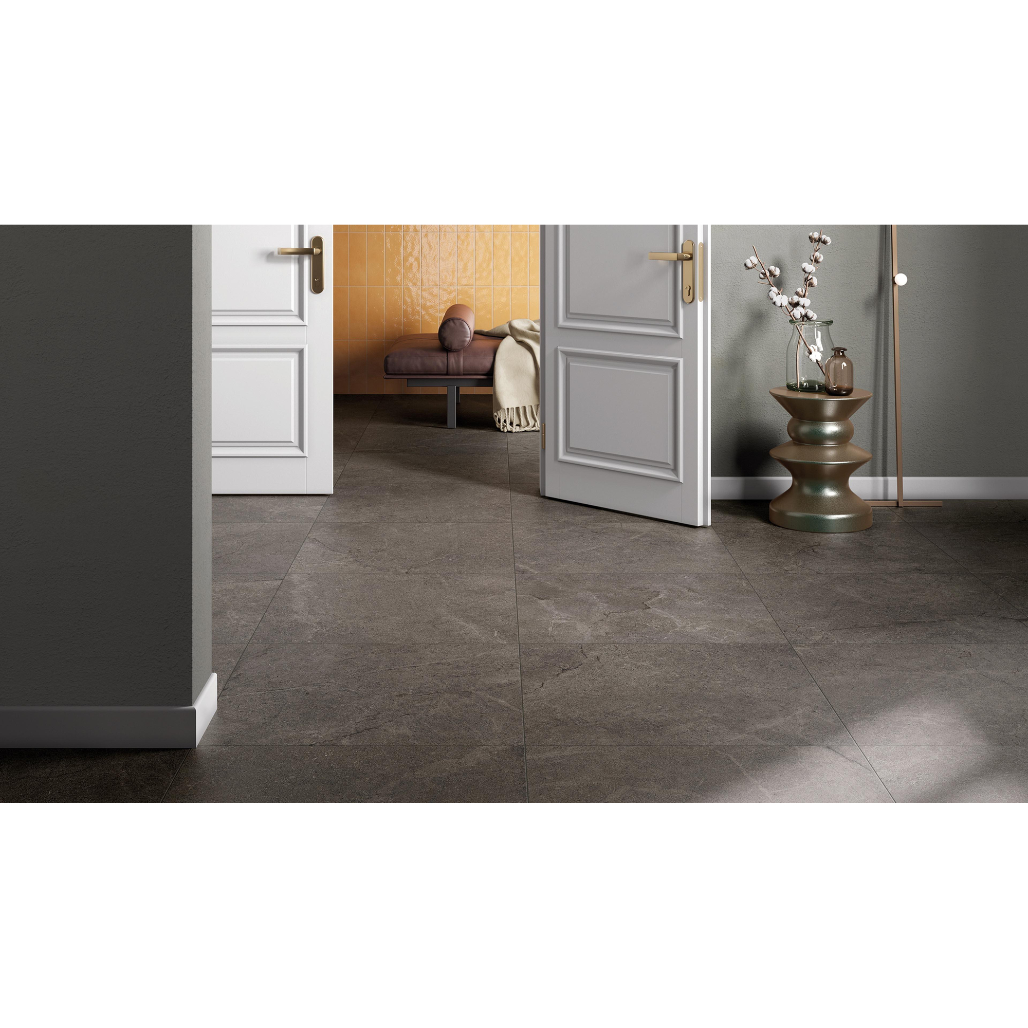 De donkere kleur met natuursteenlook geeft je interieur direct een luxe uitstraling, zonder de nadelen van echt natuursteen. De tint Dark sluit mooi aan bij zwarte kranen, betonlook meubels en houten accenten, zodat je eenvoudig een samenhangend geheel creëert. De vlakke, matte afwerking zorgt voor een rustige, chique basis die niet snel verveelt en waar je woonstijl met de jaren makkelijk op kan meebewegen. Doordat de tegels een rustige uni-uitstraling hebben met subtiele schakeringen, krijg je wel die natuurlijke diepte, maar blijft het geheel netjes en harmonieus. Ideaal als je een tijdloze vloer- of wandtegel zoekt die nu helemaal van deze tijd is, maar ook over tien jaar nog steeds passend voelt.