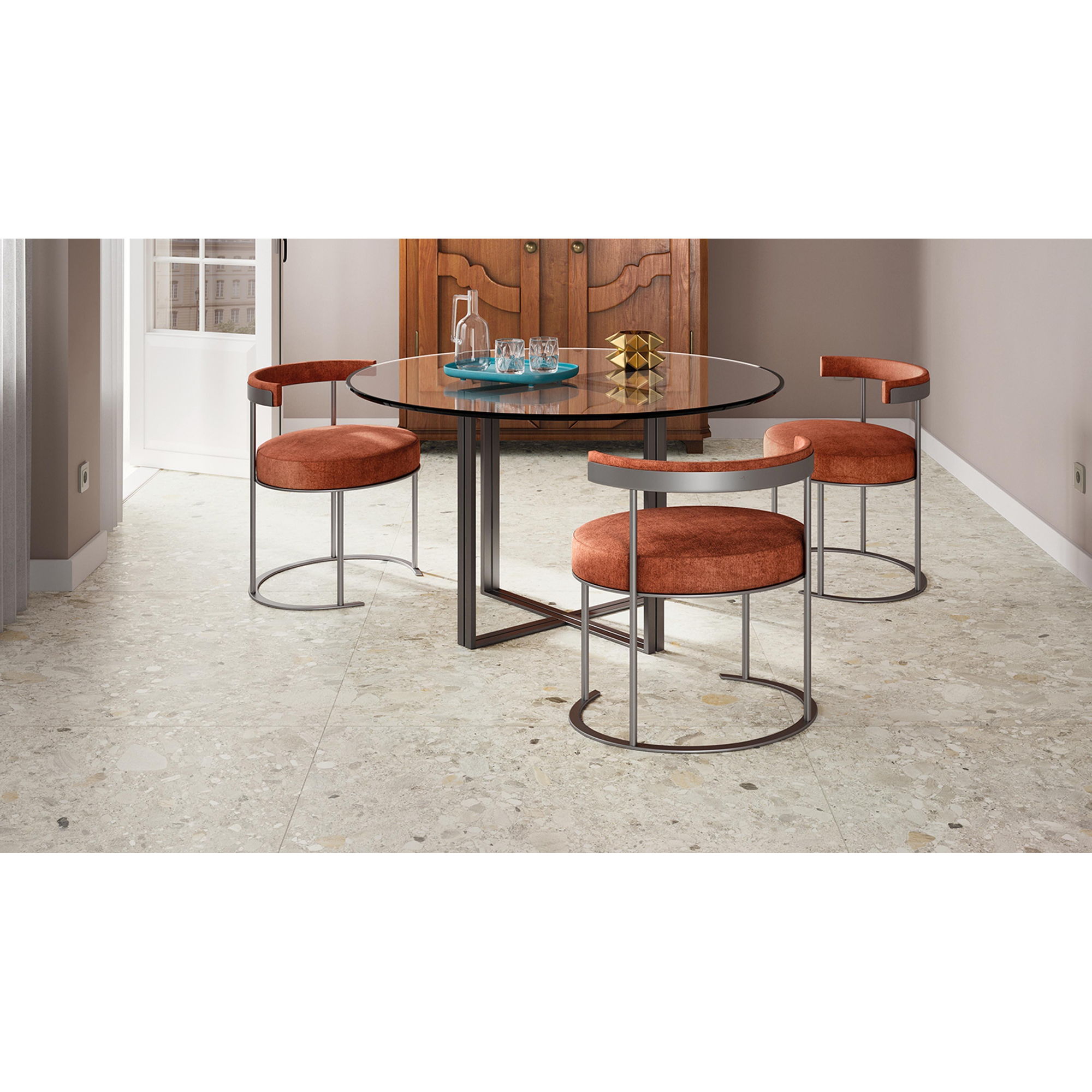 De uitstraling van deze tegel is geïnspireerd op ceppo/terrazzo: een subtiel spel van steendeeltjes in een rustige, beige Avoiro-tint. Zo creëer je het effect van natuursteen, maar dan met alle voordelen van keramiek. De matte afwerking voorkomt hinderlijke schittering en geeft je badkamer of woonvloer een zachte, warme uitstraling. Dankzij de neutrale kleur kun je in de styling alle kanten op: combineer met hout voor een Scandinavische sfeer, met wit en chroom voor een frisse hotelstijl of met donkere accenten voor een stoer, modern interieur. Doordat de tegel zowel als vloertegel en wandtegel geschikt is, kun je één doorlopend materiaal gebruiken en zo een ruimtelijk, luxe geheel creëren.