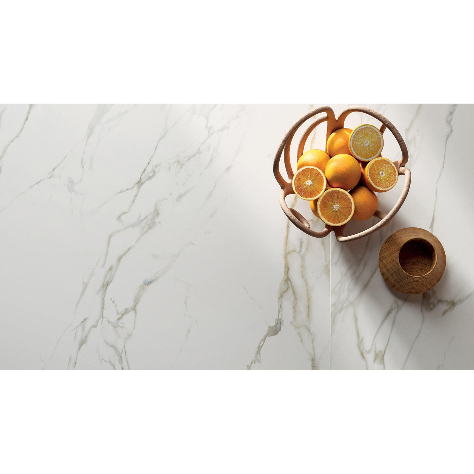 De veelzijdigheid van de Abk imoker Signoria tegel maakt hem geschikt voor diverse toepassingen. Of je nu een badkamer, keuken of andere ruimte wilt renoveren, deze tegel past perfect bij elke omgeving. De marmerlook en glans Calacatta Michelangelo (wit) voegen een tijdloze charme toe, terwijl de grote afmetingen zorgen voor een moderne uitstraling die indruk maakt.