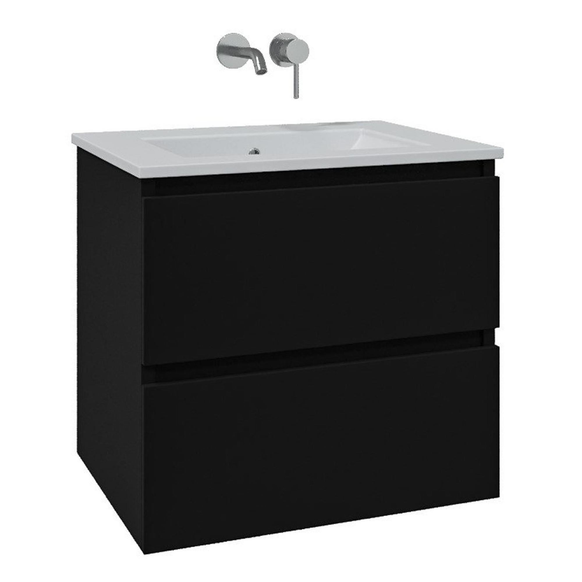 Saniclass Chaci Badkamermeubelset - 60x46x57cm - keramische wastafel wit - 1 wasbak - zonder kraangaten - 2 lades - spiegelkast - mat zwart