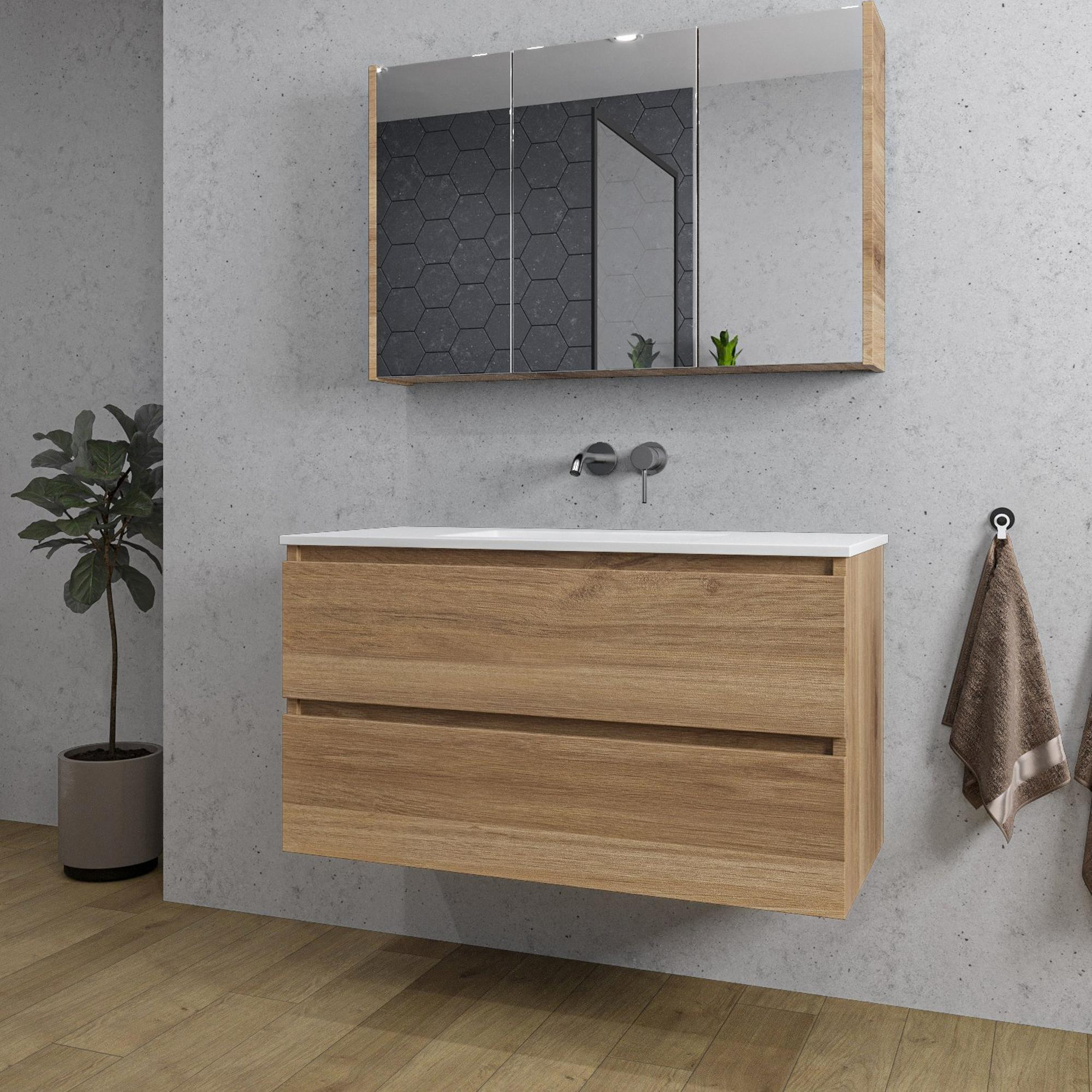 Saniclass Chaci Badkamermeubelset - 100x46x55cm - keramische wastafel wit - 1 wasbak - zonder kraangaten - 2 lades - spiegelkast - eiken