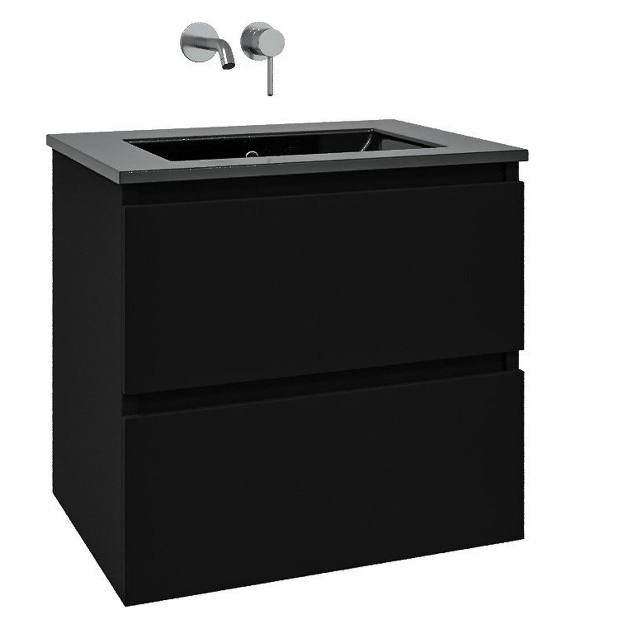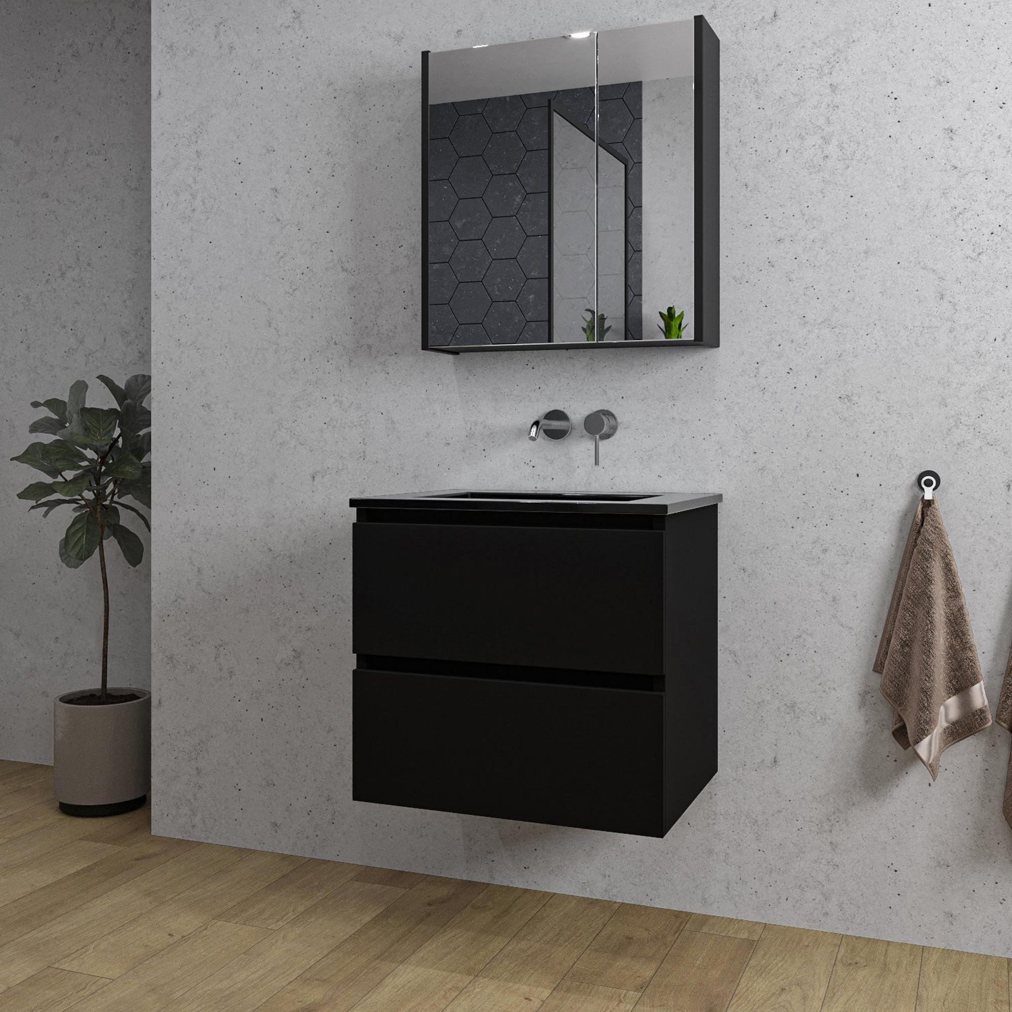 Saniclass Chaci Badkamermeubelset - 60x46x57cm - keramische wastafel zwart - 1 wasbak - zonder kraangaten - 2 lades - spiegelkast - mat zwart