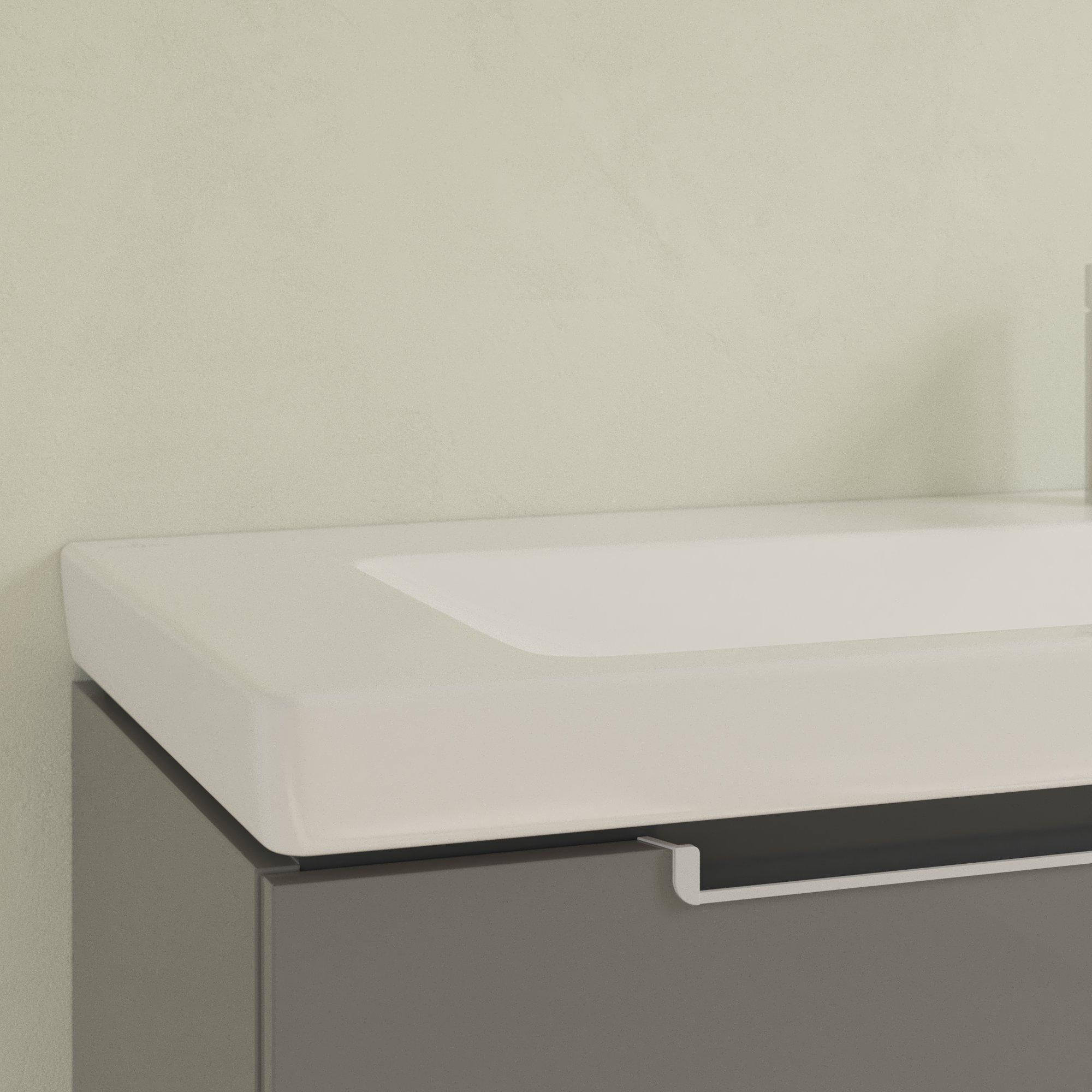 Ben je op zoek naar een royale wastafel voor boven een badkamermeubel, met genoeg ruimte voor al je dagelijkse spullen én een tijdloos design dat jarenlang mooi blijft? Dan is deze brede meubelwastafel een slimme keuze. Dankzij de rechthoekige vorm met zachte rondingen past hij perfect in moderne, minimalistische badkamers, maar komt hij ook in een tijdloze of familie-badkamer uitstekend tot zijn recht. Het diepe bekken voorkomt gespetter op de vloer, waardoor deze oplossing ideaal is voor drukke huishoudens, voor wie graag hun haar boven de wastafel wast of gewoon houdt van extra gebruiksgemak. Met de brede opbergvlakken rondom het bekken heb je je zeep, tandenborstel of scheerspullen altijd binnen handbereik en blijft je badkamer overzichtelijk en rustig ogen.