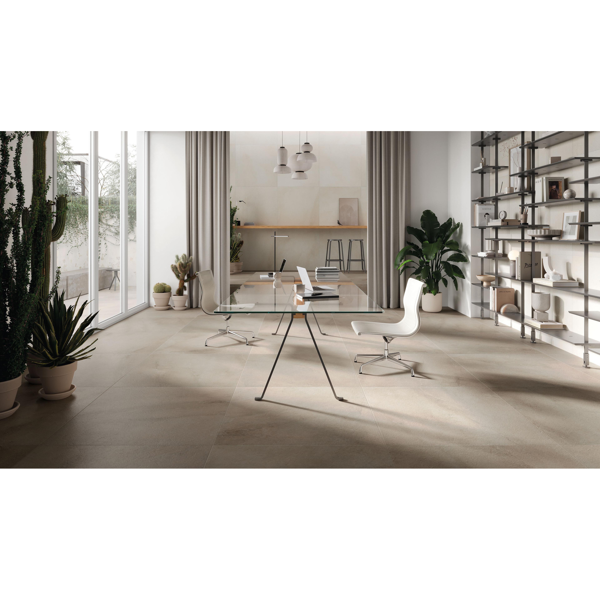 De kleur dusky greige mat is een uitgebalanceerde mix van grijs en beige, waardoor de tegel zowel warm als modern oogt. Dat maakt het een echte alleskunner in je interieur: hij combineert net zo makkelijk met zwarte kranen en donker hout als met witte meubels en lichte eiken accenten. De matte afwerking voorkomt hinderlijke schitteringen en voelt zacht en verfijnd aan, ideaal in ruimtes waar je graag een rustige, ontspannen sfeer wilt neerzetten. Kies je voor één doorlopende tegel op vloer en wanden, dan ontstaat een harmonieuze basis die je met textiel, accessoires en verlichting steeds een andere uitstraling kunt geven, van spa-achtig zen tot strak en industrieel.