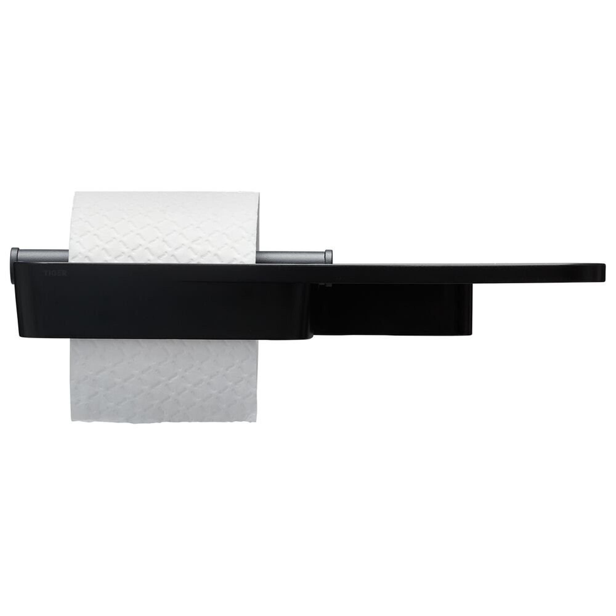 Tiger Tess Toiletrolhouder - met planchet - zelfklevend/boren - zwart/antraciet