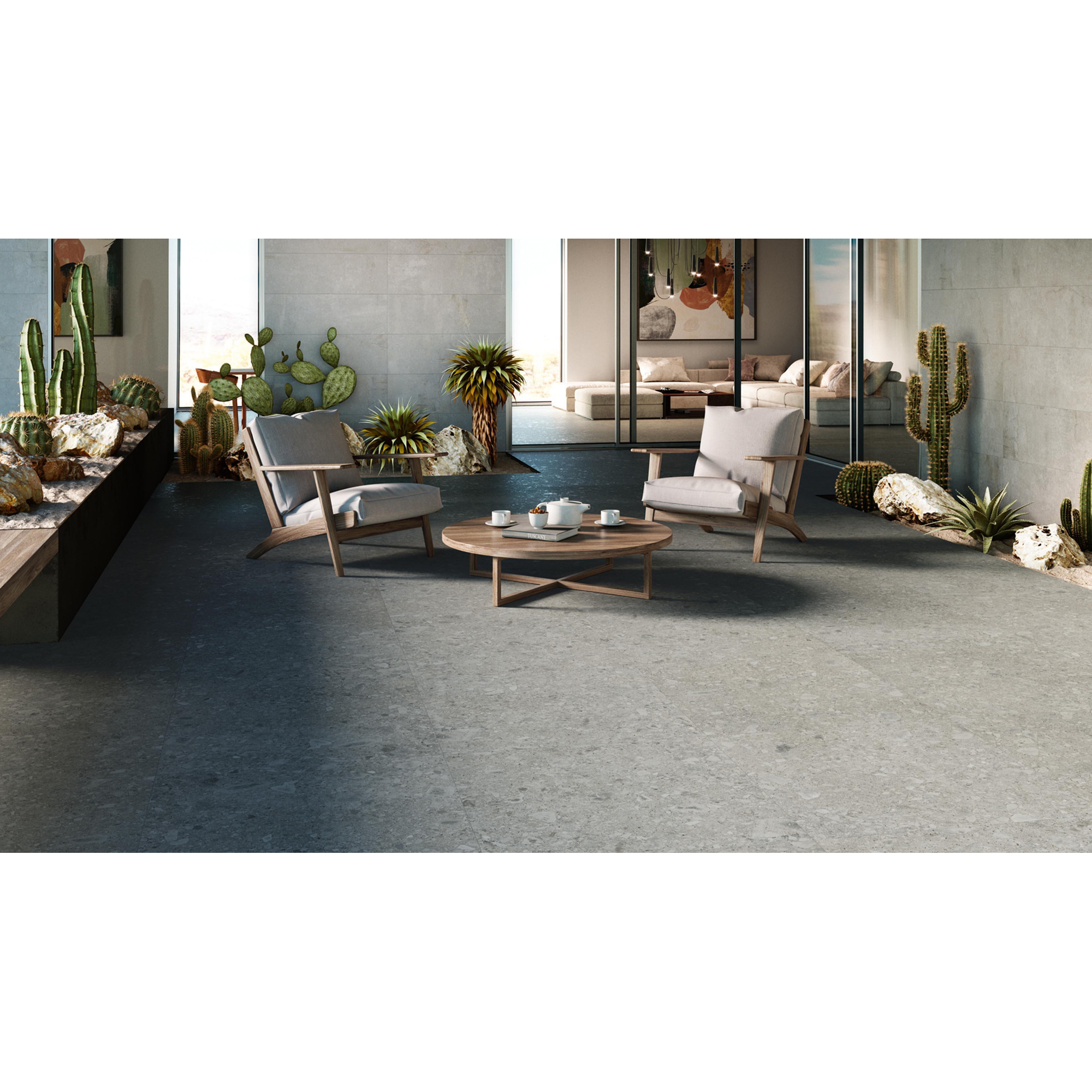 Het formaat van 59,5x119,2 cm geeft je interieur meteen een hoogwaardige hoteluitstraling. Door de langgerekte rechthoek ontstaat een rustig lijnenspel, zeker wanneer je de tegels in de lengte van de ruimte legt: zo laat je een smalle badkamer of lange gang optisch groter lijken. De grijze kleur is bewust neutraal gehouden, zodat je er gemakkelijk verschillende stijlen mee kunt combineren, van industrieel tot Scandinavisch of modern chic. De natuursteenlook sluit mooi aan bij de huidige tegeltrends, maar blijft tijdloos, waardoor je niet bang hoeft te zijn dat je vloer over een paar jaar gedateerd oogt. Omdat de tegel gerectificeerd is, kun je met smalle voegen werken; dat versterkt het ruimtelijke effect en zorgt voor een strak, bijna naadloos geheel.