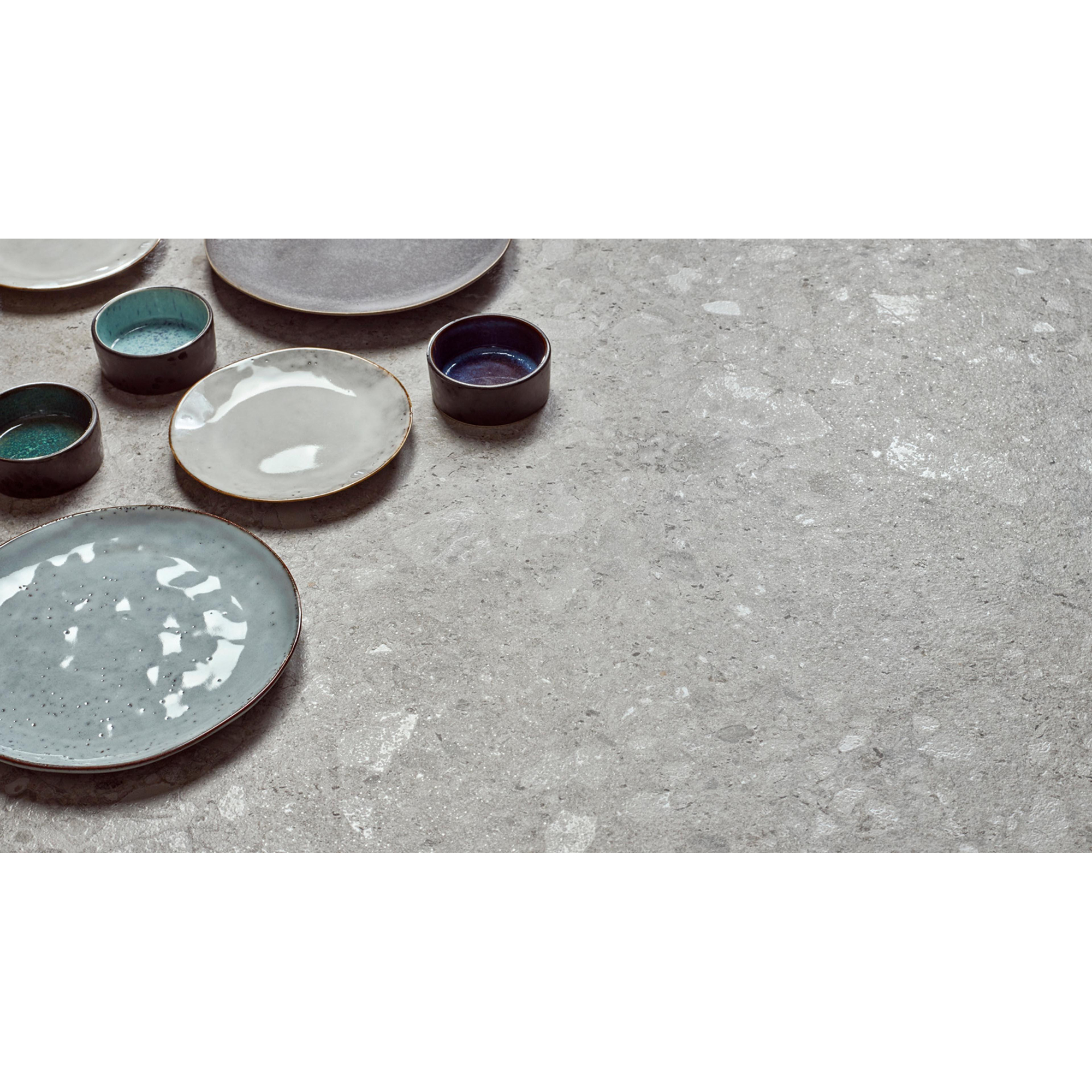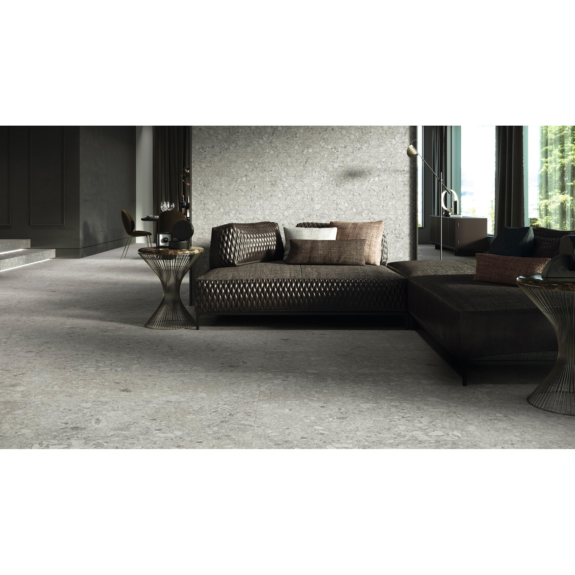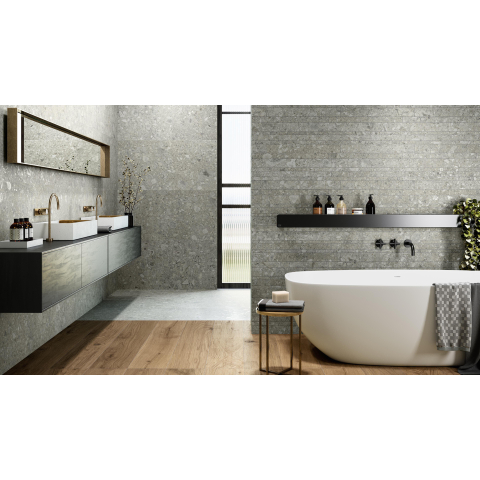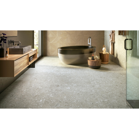 Zoek je een elegante, grootformaat tegel die zowel je vloer als wand een rustige, luxueuze uitstraling geeft? Deze grijze keramische tegel met natuursteenlook is een uitstekende keuze voor wie een moderne, tijdloze badkamer, woonkamer of keuken wil creëren zonder in te leveren op comfort en onderhoudsgemak. Dankzij het royale formaat van 59,5x119,2 cm oogt elke ruimte optisch groter en rustiger, terwijl de matte afwerking hinderlijke schittering voorkomt, bijvoorbeeld bij spots of daglicht. De tegel is geschikt als vloertegel én wandtegel en past perfect in strakke, minimalistische interieurs, maar combineert net zo mooi met warme houttinten of zwarte accenten. Of je nu een complete nieuwbouwbadkamer inricht, een bestaande vloer wil vervangen of dezelfde tegel door wilt trekken naar hal of toilet: met deze serie leg je een stijlvolle, praktische basis waar je jarenlang plezier van hebt.