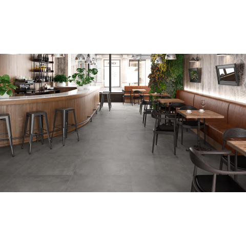 De subtiele betonlook in de kleur Graphite geeft je ruimte een moderne, rustige uitstraling zonder kil te worden. De grijstint is zorgvuldig afgestemd: donker genoeg voor een luxe, stoer effect, maar toch neutraal zodat hij goed combineert met witte sanitairproducten, houttinten en zwarte of chromen kranen. Door de egale, uni-uitvoering zonder drukke patronen ontstaat er een strak geheel dat niet snel verveelt. Het grotere formaat van 59,5 x 59,5 cm zorgt voor minder voegen, waardoor de vloer optisch ruimer oogt en de betonlook nog beter tot zijn recht komt. Ideaal als je een hotelchique badkamer, minimalistische leefkeuken of praktische, maar mooie hal wilt creëren.