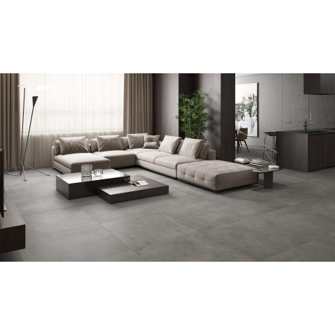 Dankzij de gerectificeerde randen kun je deze tegel met smalle voegen plaatsen, wat een bijna doorlopend vloeroppervlak creëert. Dat oogt bijzonder modern en zorgt ervoor dat ruimtes optisch groter lijken. De tegel is geschikt als zowel vloertegel als wandtegel; zo ontwerp je eenvoudig een volledig doorlopende look van vloer tot wand, of kies je juist voor accenten, bijvoorbeeld een rustige vloer in combinatie met een uitgesproken douchewand. De vorstbestendigheid maakt de tegel in veel gevallen ook interessant voor onverwarmde ruimtes. Omdat het een neutrale grijstint in betonlook betreft, combineer je hem moeiteloos met verschillende stijlen: industrieel, modern, Scandinavisch of juist hotel-chic, het kan allemaal.