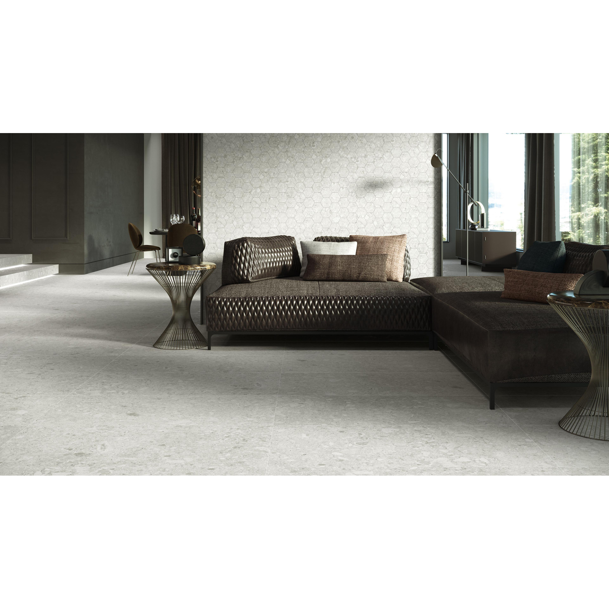 Ben je op zoek naar een rustige maar luxe basis voor je badkamer of woonvloer, dan biedt deze grote, grijze tegel precies de juiste combinatie van uitstraling en gebruiksgemak. Laat je inspireren door de mogelijkheden, stem het legpatroon af op jouw ruimte en maak je droombadkamer compleet met dit stijlvolle product en ervaar zelf de kwaliteit.
