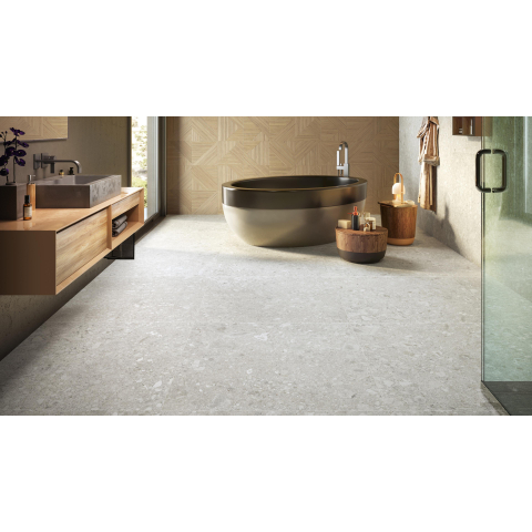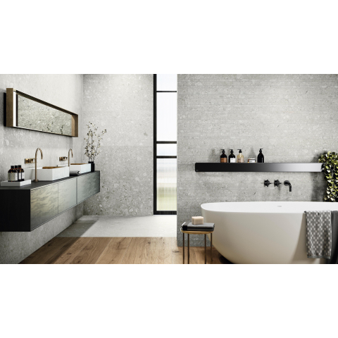 Deze royale keramische tegel is een uitstekende keuze als je een rustige, natuurlijke basis in je badkamer, toilet of woonvloer zoekt. De langwerpige afmeting geeft iedere ruimte direct een luxe hotelsfeer, terwijl de subtiele grijsgetinte kleur mooi combineert met zowel warm hout als strak zwart sanitair. Dankzij de matte, natuursteen-look oogt de vloer stijlvol maar nooit schreeuwerig, en creëer je eenvoudig één geheel door dezelfde tegel op zowel vloer als wand toe te passen. Dit maakt de tegel bijzonder geschikt voor moderne badkamers, inloopdouches en leefkeukens waarin je graag een tijdloze, doorlopende vloer wilt. Door de combinatie van strakke randen, vlak oppervlak en slijtvaste kwaliteit is dit bovendien een slimme keuze als je op zoek bent naar duurzame tegels die er jarenlang mooi uit blijven zien, ook bij intensief dagelijks gebruik.
