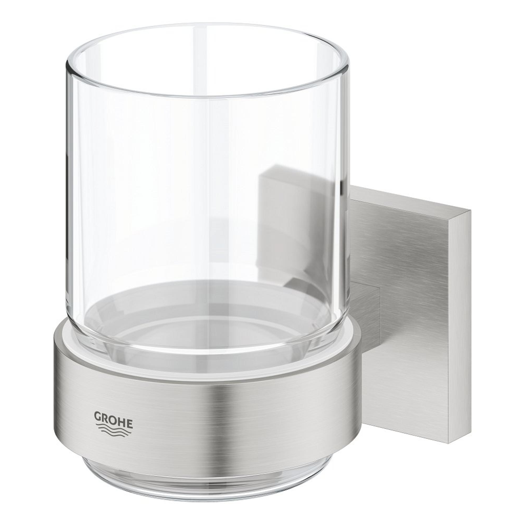 GROHE Start Cube Bekerhouder - 9.5x10.6x7.2cm - met glas - supersteel