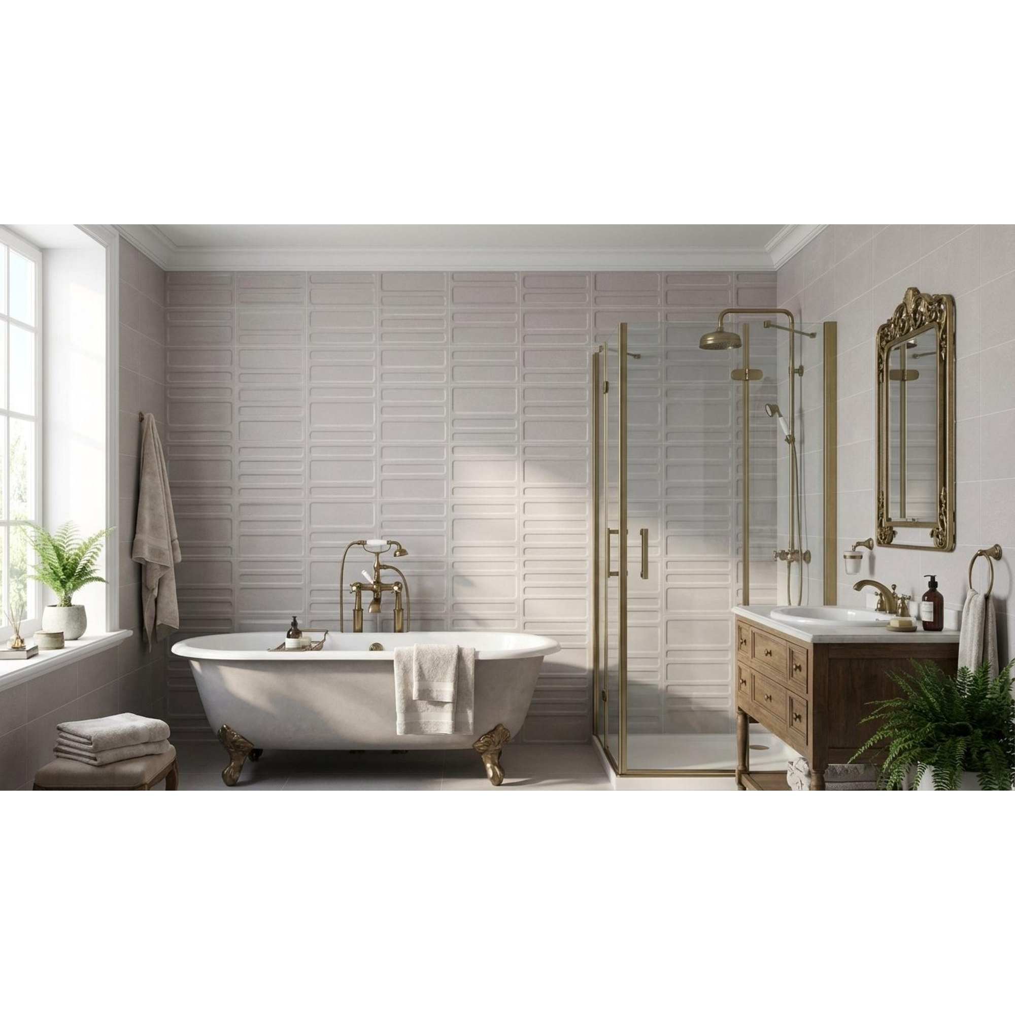 De Cifre Ceramica wandtegel straalt een magnifieke schoonheid uit die moeiteloos de aandacht trekt. De Axel Pearl kleur combineert perfect met diverse interieurstijlen en creëert een sfeer van rust en verfijning. De grote afmetingen van 40x120cm geven een ruimtelijk effect en maken deze tegel ideaal voor het creëren van een luxe uitstraling in de badkamer.