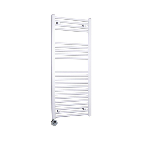 Sanicare Elektrische Radiator - 111.8x45cm - 596W - design - thermostaat - chroom - linksonder - wit