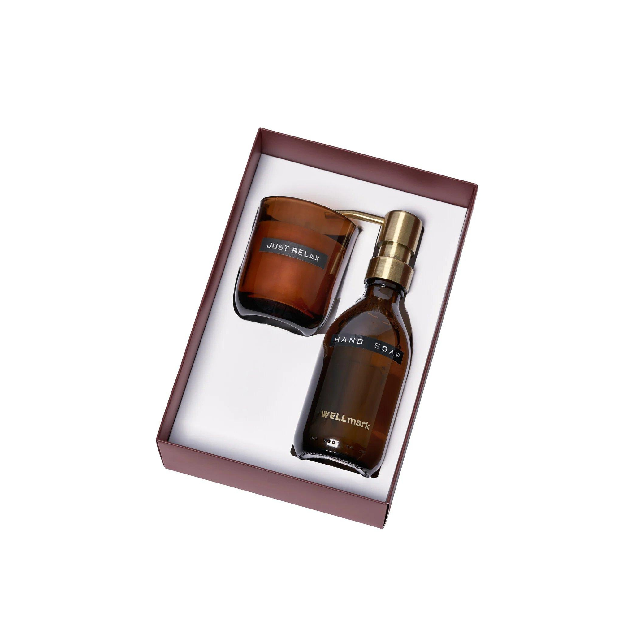 Wellmark Discover giftset - handzeep en geurkaars - bruin glas