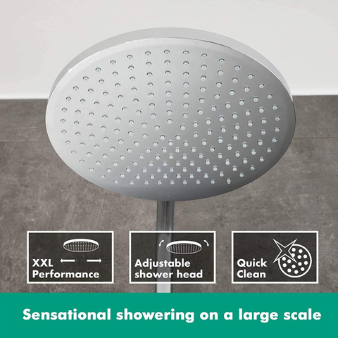 De hoofd- en handdouches van Hansgrohe beschikken over de luxe van XXL-performance. Dit betekent dat de douches extra grote straaloppervlakken hebben, waardoor u nog meer geniet van uw douche! Met de Hansgrohe Crometta showerpipe kunt u dus optimaal ontspannen aan het einde van een lange (werk)dag!
