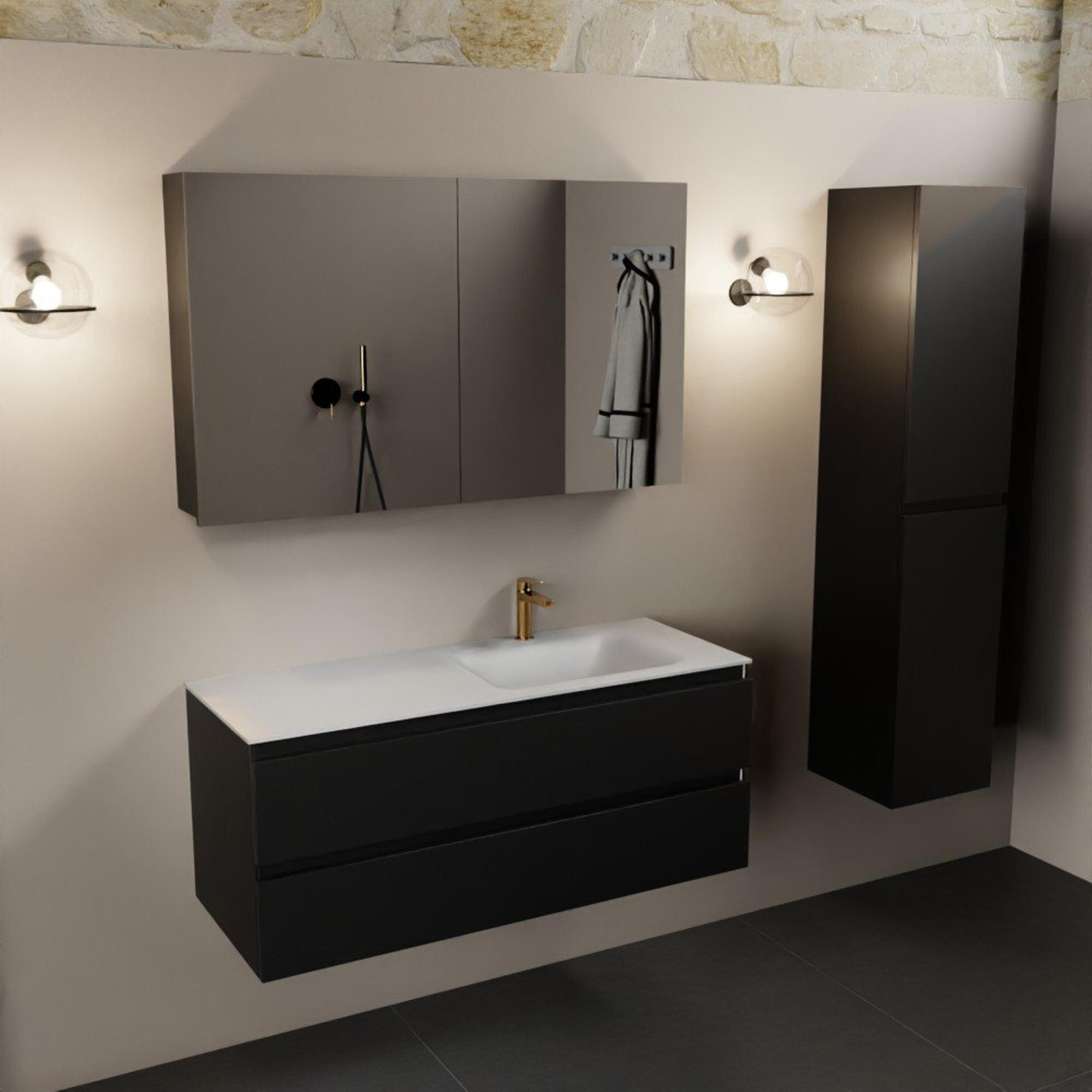 Mondiaz Aivy badmeubelset - 120x45x50cm - 1 kraangat - 1 wasbak talc Solid surface - Rechts - 2 lades - Met spiegelkast - MDF Urban