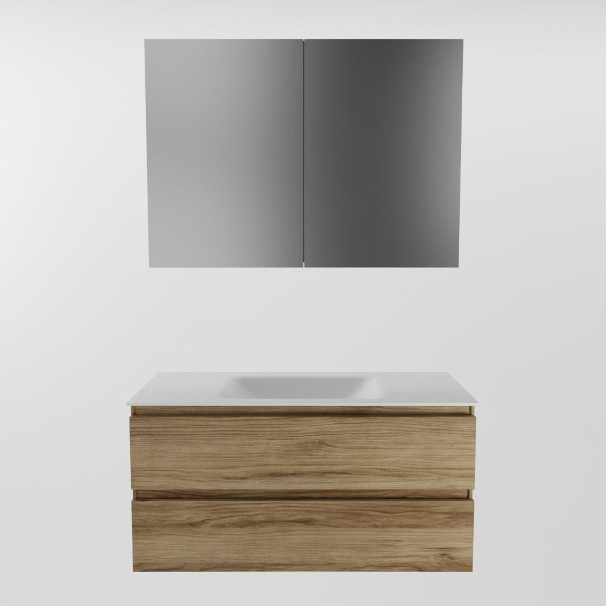 Mondiaz Aivy badmeubelset - 100x45x50cm - 0 kraangaten - 1 wasbak talc Solid surface - Midden - 2 lades - Met spiegelkast - Melamine Chai