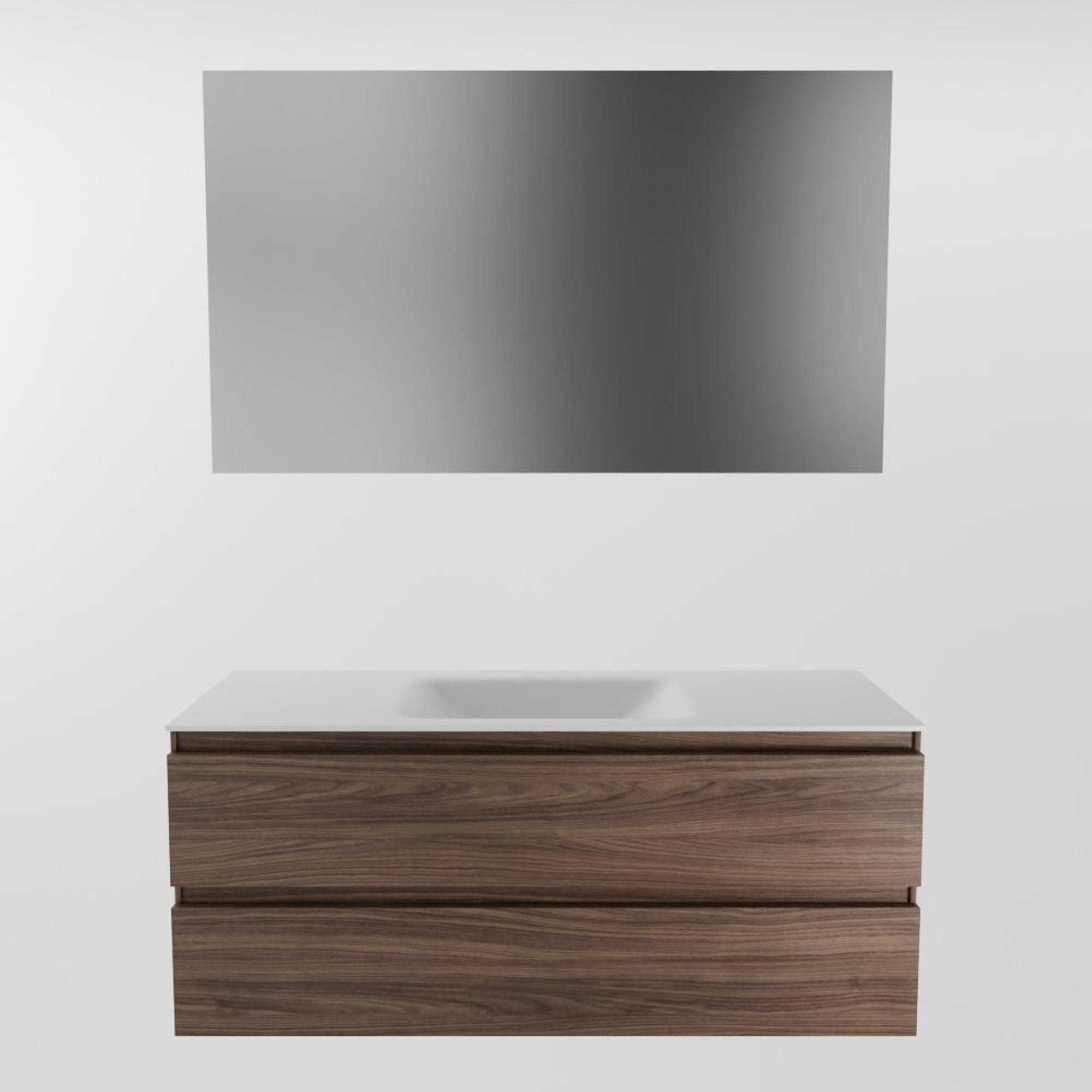 Mondiaz Aivy badmeubelset - 120x45x50cm - 0 kraangaten - 1 wasbak talc Solid surface - Midden - 2 lades - Met spiegel - Melamine Mocha