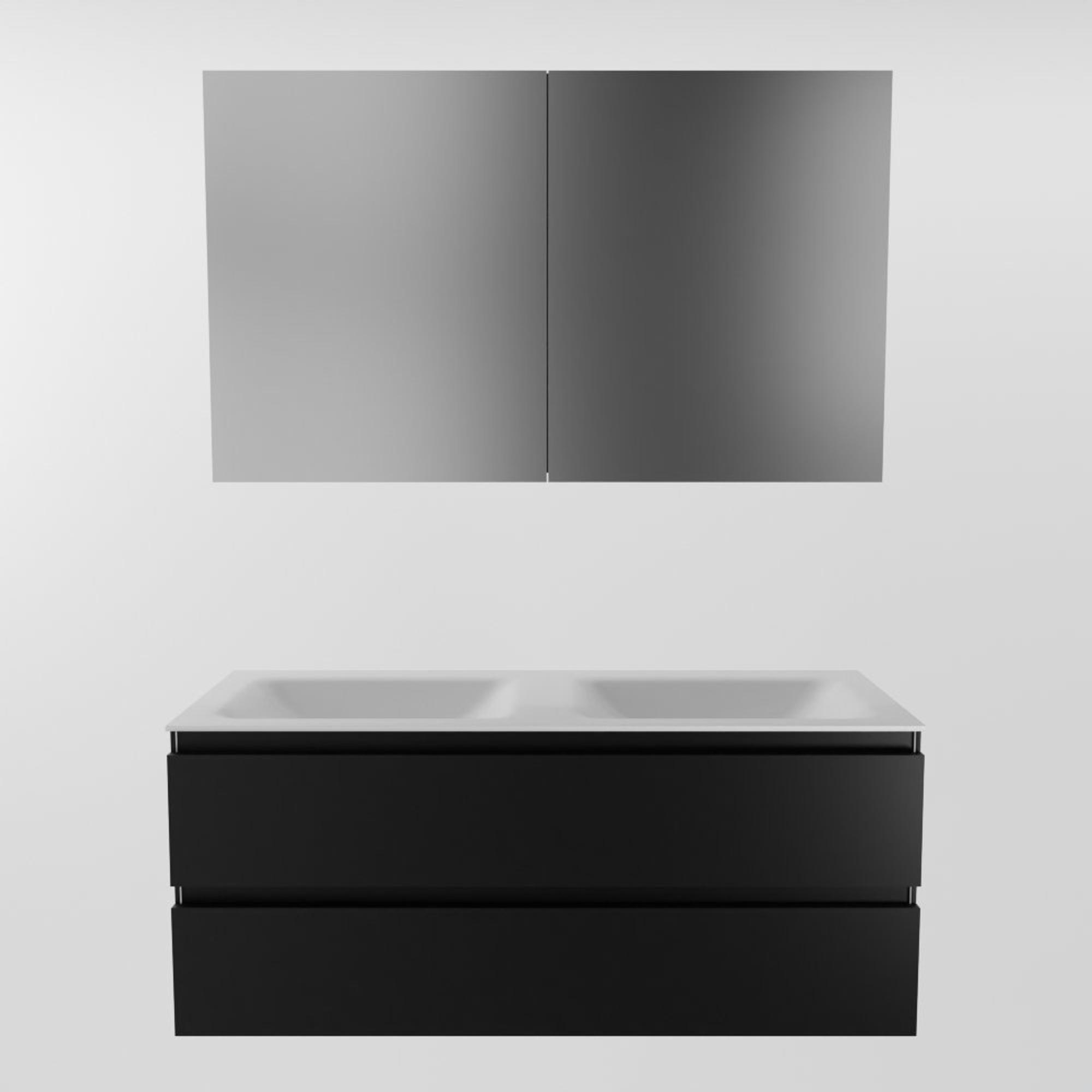 Mondiaz Aivy badmeubelset - 120x45x50cm - 0 kraangaten - 2 wasbakken talc Solid surface - Links en rechts - 2 lades - Met spiegelkast - MDF Urban