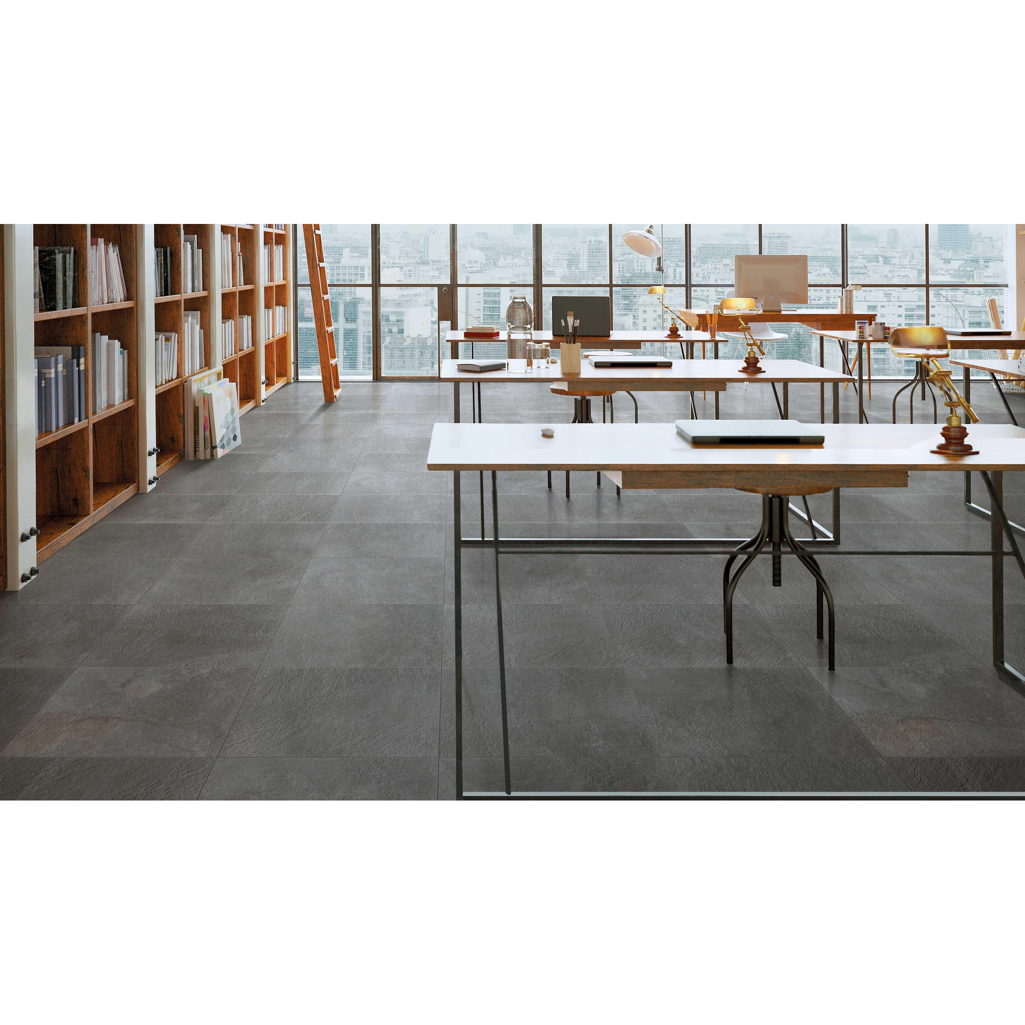 De natuursteen look in een antracietkleurige M. selected tint combineert moeiteloos met uiteenlopende stijlen: van industriële badkamer met zwarte kranen en betonlook, tot een warme, hotel-chique sfeer met houtaccenten en zachte tinten. De subtiele multicolor kleurnuances in het oppervlak geven de tegel diepte en karakter, vergelijkbaar met leisteen, zonder dat het te druk oogt. De matte afwerking voorkomt hinderlijke reflecties en voelt comfortabel aan, ook bij blote voeten. Dit maakt de tegel niet alleen stijlvol voor de badkamer, maar ook perfect voor hal, keuken of woonkamer, waar je een stoere maar verfijnde vloer wilt die jaren mooi blijft.