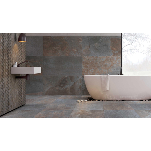 Met een formaat van 100x100 cm creëer je direct een ruimtelijke uitstraling in elke badkamer, woonkamer of hal. Grote tegels zorgen voor minder voegen, waardoor de ruimte rustiger oogt en lijnen mooi doorlopen. Dat is vooral fijn in kleinere badkamers, waar je met het juiste tegelwerk optisch extra vierkante meters wint. De natuursteen look in multicolor tinten geeft diepte en karakter, zonder schreeuwerig te worden. Perfect als je een luxe, architectonische uitstraling wilt, maar wél met het gebruiksgemak van keramische tegels. Doordat deze tegel ook als wandtegel te gebruiken is, kun je vloer en wanden mooi op elkaar afstemmen en één geheel maken van je interieur.