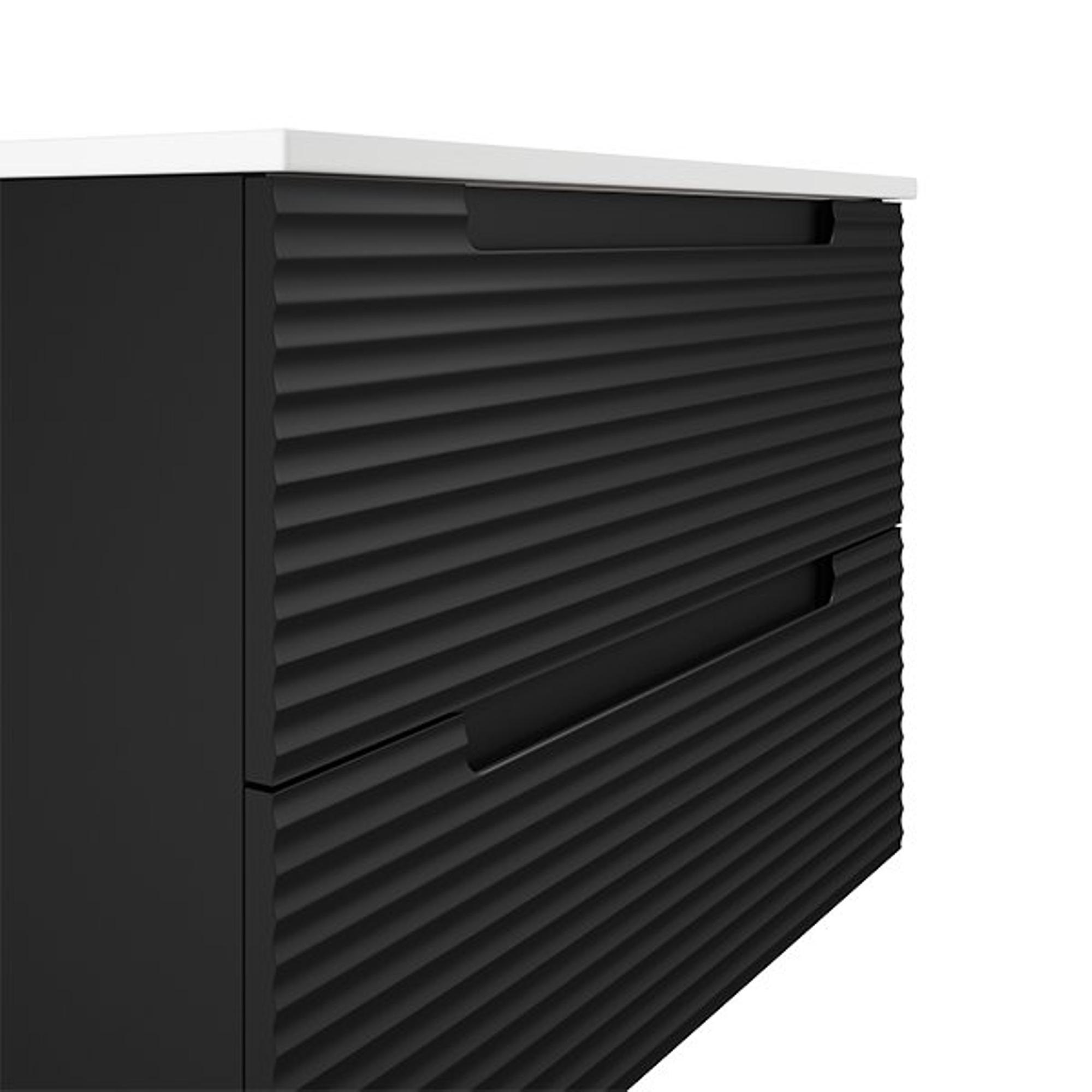 De combinatie van het moderne design, de matte zwarte afwerking en de geïntegreerde greep geeft het meubel een luxe uitstraling die jouw badkamer een verfijnde sfeer geeft. Het meubel is niet alleen functioneel, maar ook een echte blikvanger die de ruimte verrijkt. Door de subtiele elegantie past het moeiteloos bij verschillende stijlen, van industrieel tot Scandinavisch, en maakt het jouw badkamer compleet.