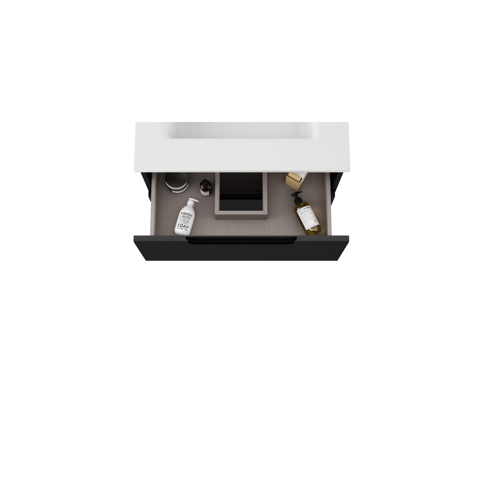 Met dit meubel geef je jouw badkamer direct een moderne en stijlvolle upgrade. Het strakke ontwerp en de matte zwarte afwerking zorgen voor een tijdloze uitstraling die moeiteloos past in diverse interieurstijlen. Dankzij de slimme indeling met twee ruime lades houd je al je badkamerbenodigdheden netjes en overzichtelijk opgeborgen. Zo creëer je niet alleen rust in de ruimte, maar ook een gevoel van luxe en comfort. De hoogwaardige materialen en de geïntegreerde greep maken het meubel niet alleen mooi, maar ook bijzonder praktisch in gebruik. Dit meubel is een waardevolle toevoeging die jouw badkamer transformeert tot een plek waar je elke dag met plezier begint en eindigt.