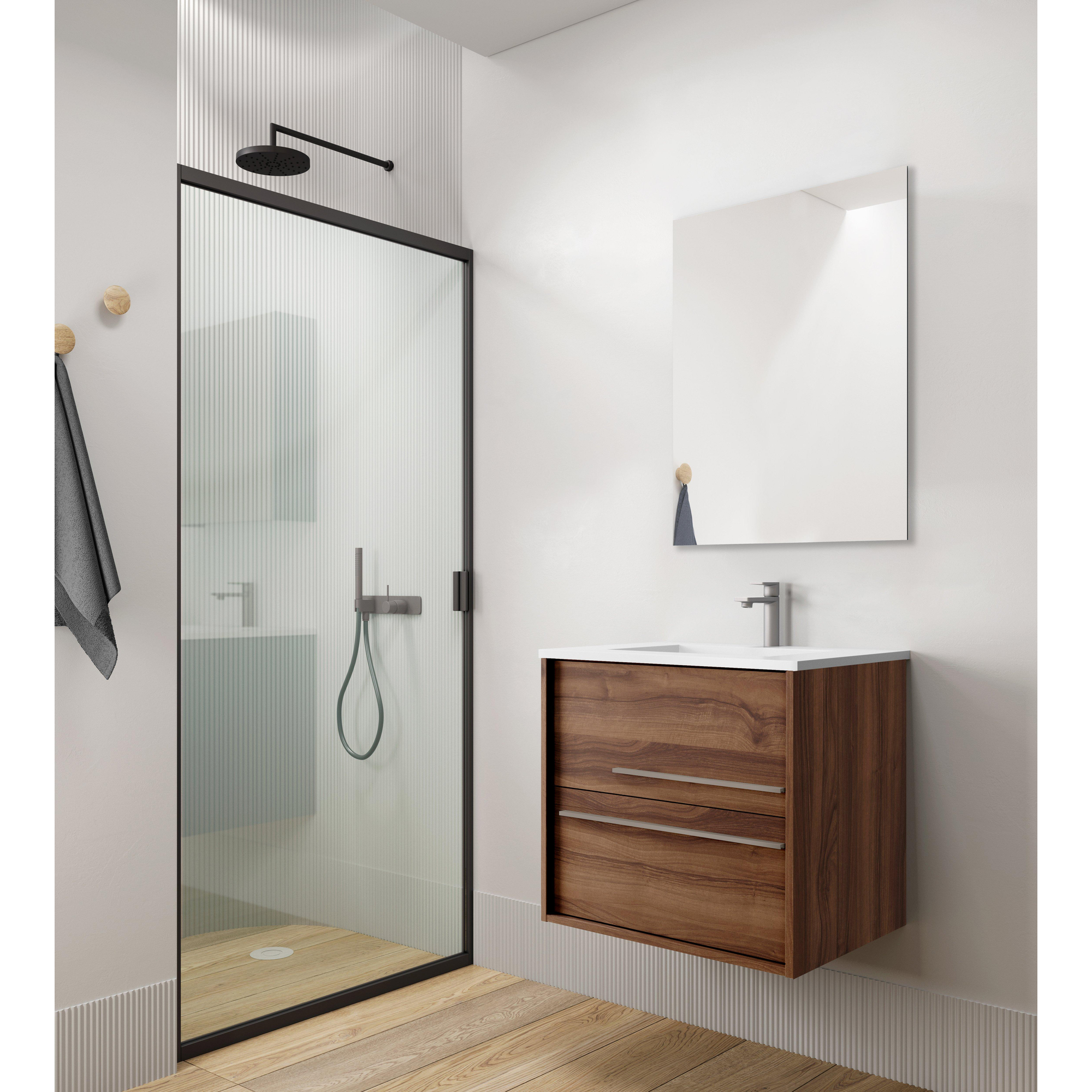 De warme notenhouten afwerking geeft dit meubel een tijdloze en natuurlijke uitstraling die direct sfeer toevoegt aan je badkamer. Het strakke, minimalistische design met standaard grepen sluit naadloos aan bij uiteenlopende badkamerstijlen, van modern tot klassiek. Door de subtiele houtstructuur voelt het meubel uitnodigend en luxe aan, zonder te overheersen. Zo creëer je een harmonieuze balans tussen functionaliteit en esthetiek, waardoor je badkamer een plek wordt waar je graag tijd doorbrengt.