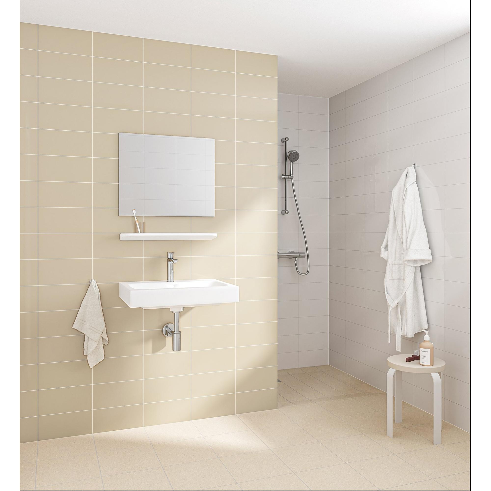 Deze glanzende witte wandtegel is een ideale keuze als je een rustige, tijdloze basis in je badkamer, toilet of keuken wilt creëren én eerst zeker wilt weten of de kleur en glansgraad bij jouw ruimte passen. Dankzij het compacte formaat werkt deze tegel mooi in zowel kleine als grotere ruimtes: je kunt er speelse verbanden mee leggen of juist een strakke, rustige wand realiseren. Doordat het hier om een sample gaat, kun je de tegel thuis in verschillende lichtomstandigheden bekijken, makkelijk combineren met jouw vloer- en meubelkleuren en zo met meer zekerheid een definitieve keuze maken. Perfect als je twijfelt tussen meerdere wittinten of glansniveaus en niets aan het toeval wilt overlaten bij het ontwerpen van je nieuwe badkamer.