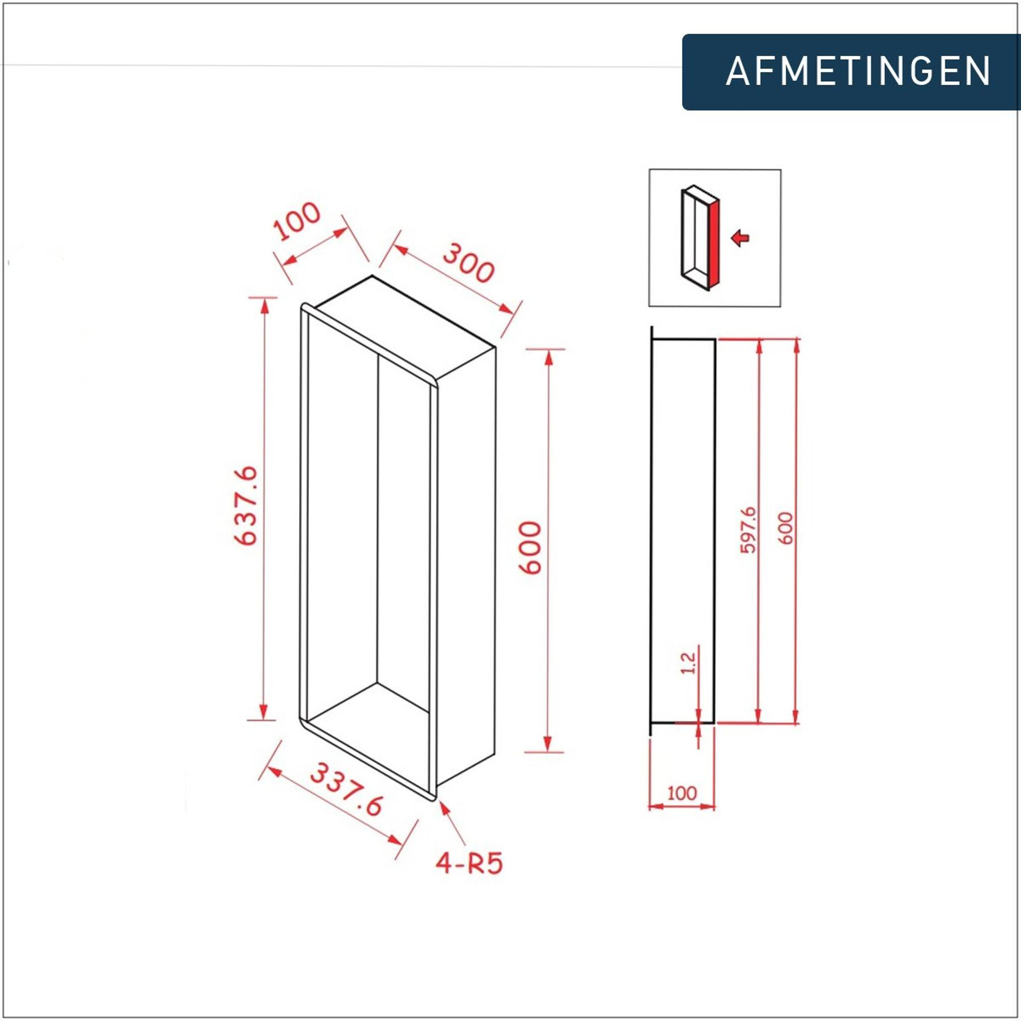 FugaFlow Arcas Inbouwnis - 30x60x10cm - mat zwart