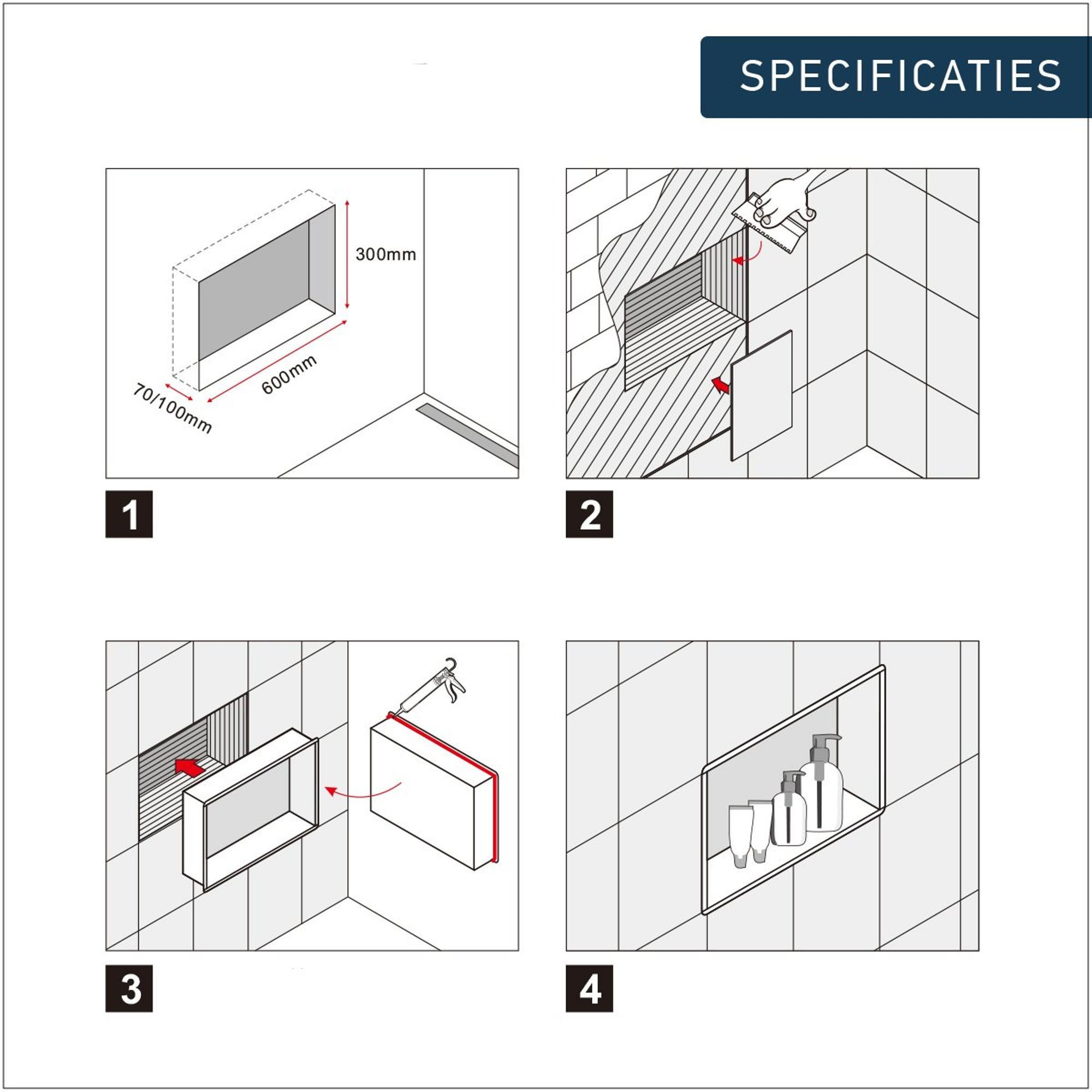 Naast zijn esthetische waarde is de FugaFlow Arcas Inbouwnis ook zeer praktisch in gebruik. Met voldoende opbergruimte en een compact formaat is deze inbouwnis ideaal voor het organiseren van diverse badkamerbenodigdheden, van shampooflessen tot zeepjes. De stevige constructie en hoogwaardige materialen garanderen duurzaamheid en langdurig gebruiksgemak, waardoor deze inbouwnis een functionele toevoeging is aan elke badkamer.