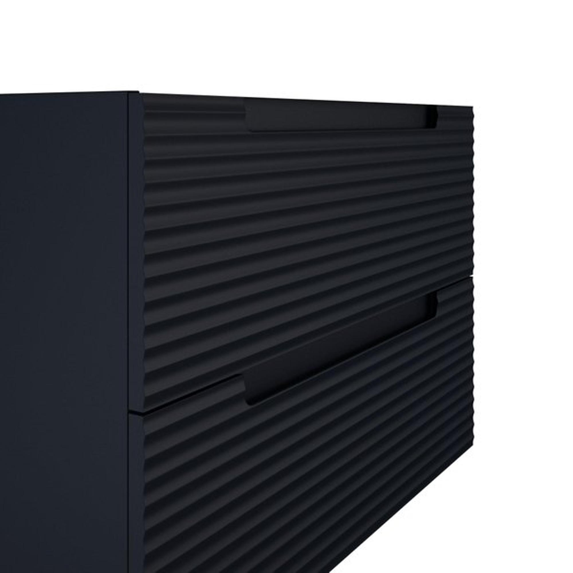 Elk detail van dit meubelset ademt elegantie. De hoogwaardige materialen en de matte afwerking geven het meubel een luxe uitstraling zonder te overheersen. De geïntegreerde grepen zorgen voor een strakke, minimalistische look en maken het openen van de lades soepel en geruisloos. De combinatie van de glanzende keramische wasbak en het matte marine blauw creëert een prachtig samenspel van texturen en kleuren, waardoor jouw badkamer een warme en uitnodigende sfeer krijgt.