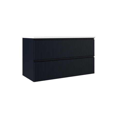 Saniclass Prime Blend Badkamermeubelset - 100x55x46cm - 1 rechthoekige keramische wasbak wit - 1 kraangat - 2 lades - rechthoekige spiegel - mat marine blauw