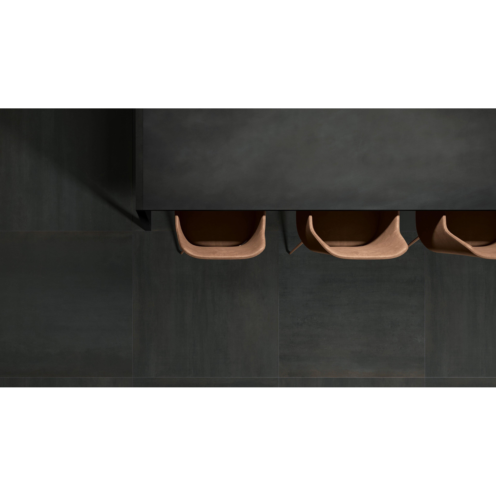 De combinatie van een diepe, zwarte kleur met een verfijnde metaallook maakt deze tegel perfect voor wie houdt van een moderne, hotel-chique of industriële badkamer. Het oppervlak is mat, waardoor licht niet hard weerkaatst maar zacht wordt verspreid, wat een rustige en luxe sfeer geeft. De subtiele schaduw- en kleurnuances zorgen voor een levendig maar niet druk beeld, alsof je naar een mooi verouderd metalen oppervlak kijkt. Dat maakt deze tegel heel geschikt als basis voor stoere zwarte kranen, betonlook meubels of juist warme houten accenten. Gebruik hem op de vloer én wand voor een krachtig, doorlopend geheel, of combineer hem met een lichte tegel voor extra contrast en ruimtelijkheid.