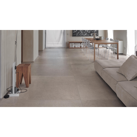 Het grote formaat van 120x120 cm zorgt voor een indrukwekkende, rustige uitstraling in je badkamer of woonruimte. Doordat je minder voegen ziet, oogt de vloer strakker en lijkt de ruimte groter en ruimtelijker. Zeker in open badkamers, suites of doorlopende vloeren van hal naar woonkamer werkt dit formaat bijzonder sfeervol. De gerectificeerde (recht geslepen) randen maken het mogelijk om met smalle voegen te werken, wat het moderne karakter nog verder versterkt. Ook praktisch: minder voegen betekent minder plek voor vuil, kalk en zeepresten, waardoor schoonmaken eenvoudiger wordt. Zo profiteer je tegelijk van design, comfort en onderhoudsgemak.