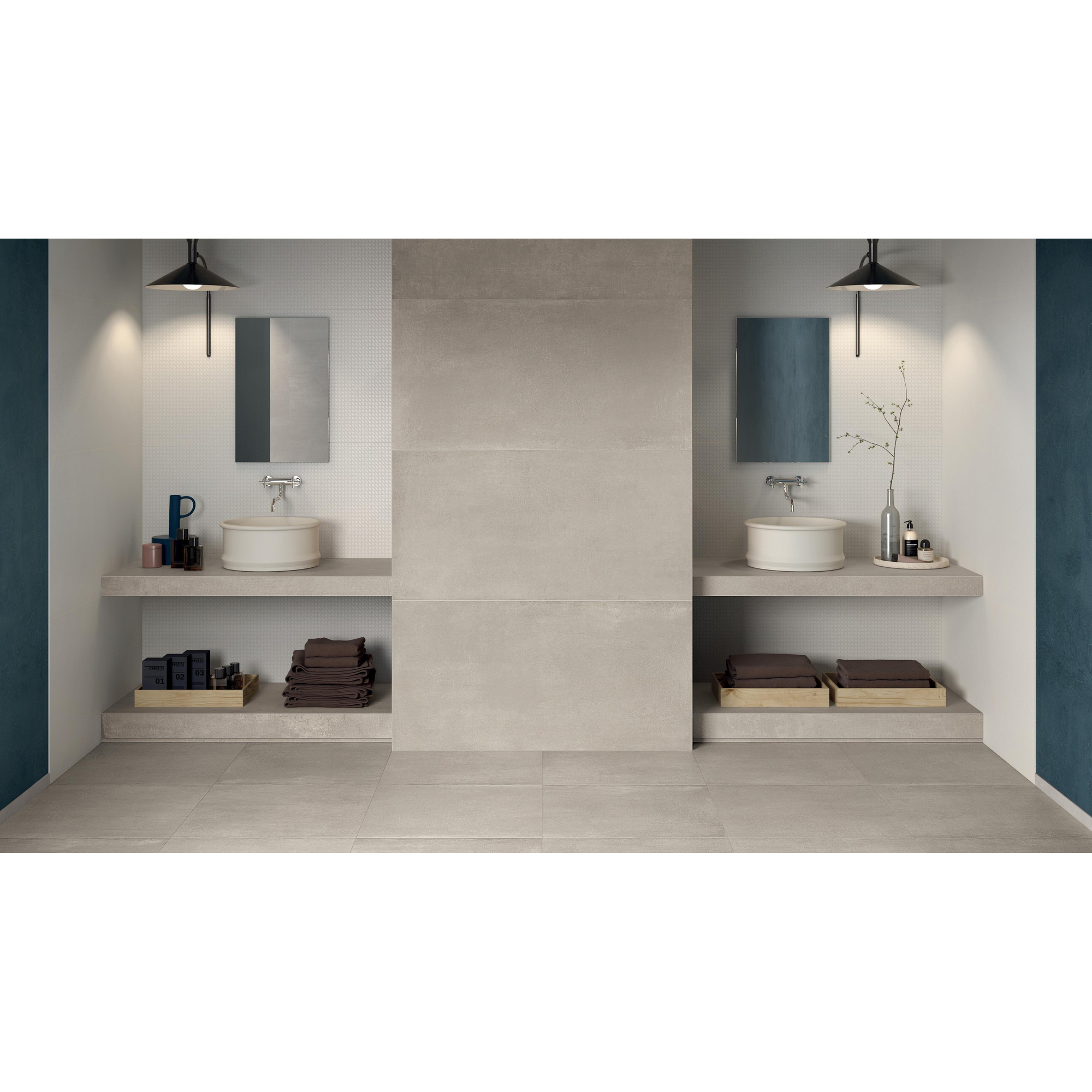 De moderne betonlook in een grijze tint geeft je ruimte een rustige, architectonische uitstraling zonder kil te worden. De kleur Cenere is een neutrale, warme grijs die makkelijk combineert met witte sanitairproducten, maar ook prachtig staat naast zwarte kranen, houtaccenten of koperkleurige details. Doordat het oppervlak vlak en mat is, krijg je een luxe, ingetogen look zoals je die vaak ziet in designhotels en wellnesscentra. De tegel is uni van verschijningsvorm, wat betekent dat het beeld heel rustig is en niet overheerst; ideaal wanneer je liever met accessoires en meubels de nadruk legt. Zo creëer je een tijdloze basis die niet snel gaat vervelen en waarmee je in de toekomst eenvoudig van stijl kunt wisselen, zonder de vloer of wanden opnieuw te moeten betegelen.