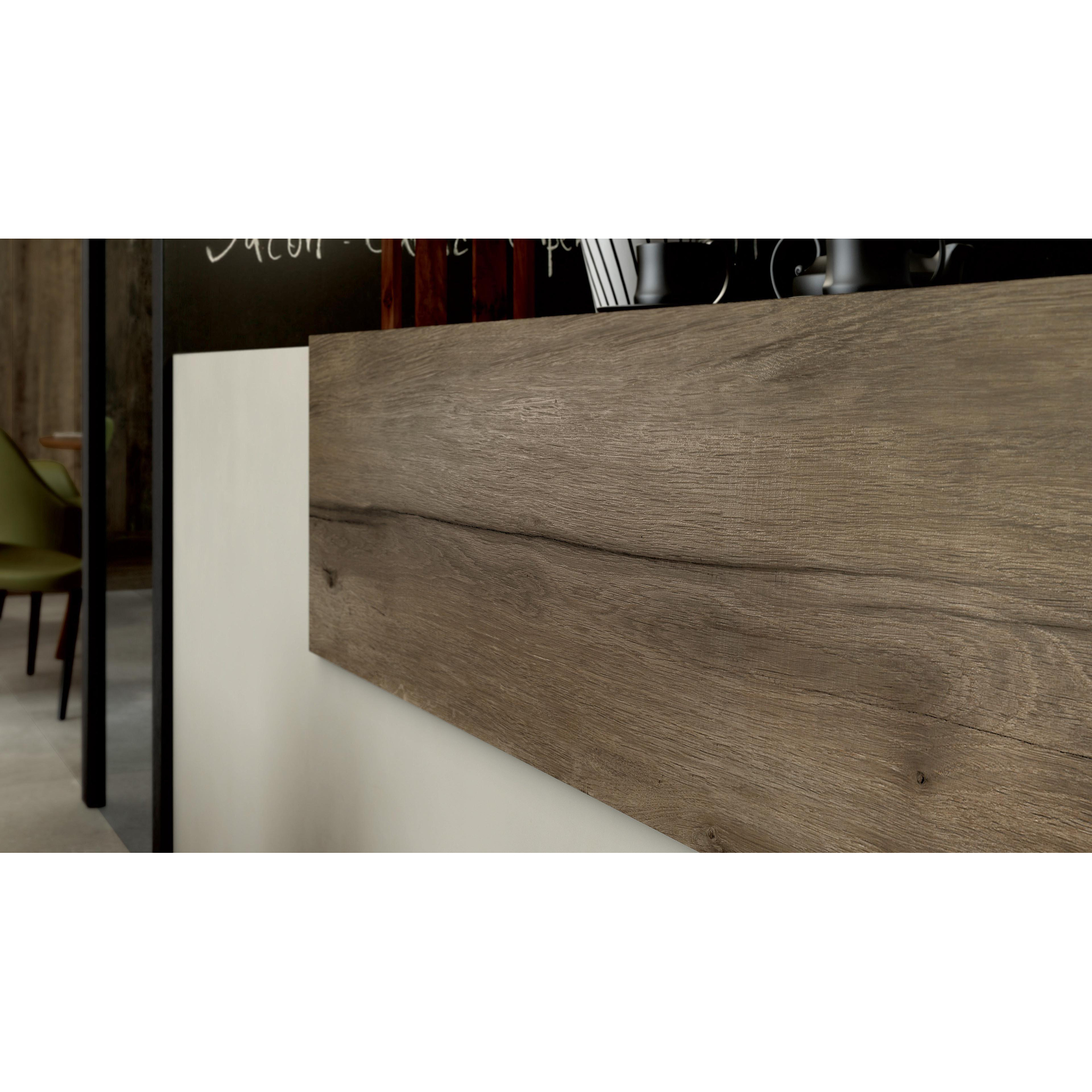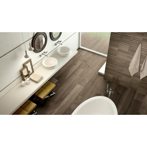 Met deze extra lange houtlooktegel haal je de warme uitstraling van natuurlijk hout in je badkamer, zonder in te leveren op het gemak van keramiek. Dankzij het royale formaat van 26,5x180 cm creëer je in een handomdraai een ruimtelijk, doorlopend effect op zowel vloer als wand. Dat maakt dit type tegel ideaal voor moderne badkamers, inloopdouches en toiletruimtes waar je een rustige, luxe basis wilt neerzetten. De matte afwerking en bruine tint zorgen voor een tijdloze, gezellige sfeer die mooi combineert met zowel witte sanitairproducten als zwarte of bronzen kranen. Zoek je een praktische oplossing voor een druk huishouden, een stijlvol accent in een hotel-chique badkamer of een naadloze overgang tussen badkamer en aangrenzende ruimtes, dan biedt deze houtlooktegel precies de juiste balans tussen stijl, comfort en onderhoudsgemak.