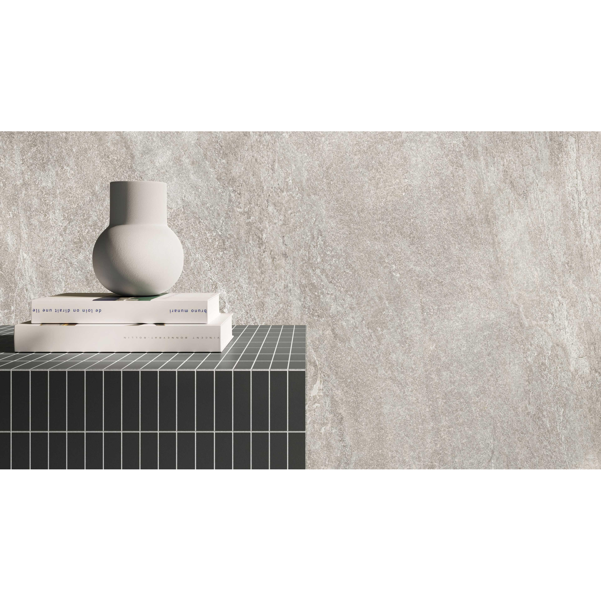Deze keramische tegel is ontworpen voor intensief dagelijks gebruik, zonder gedoe met onderhoud. In tegenstelling tot echte natuursteen hoeft hij niet geïmpregneerd te worden en is hij minder gevoelig voor vlekken en zuren uit bijvoorbeeld zeep, shampoo of schoonmaakmiddelen. Het matte, vlakke oppervlak is eenvoudig te reinigen; vaak is een mild schoonmaakmiddel al voldoende om de tegels weer als nieuw te laten ogen. De gerectificeerde randen maken het mogelijk om met smalle voegen te werken, wat niet alleen fraai oogt, maar ook minder voegoppervlak betekent om schoon te houden. Omdat de tegel vorstbestendig is, kun je hem bovendien overwegen voor onverwarmde ruimtes of bijvoorbeeld een overdekt terras dat een stijlverlenging vormt van je interieur.
