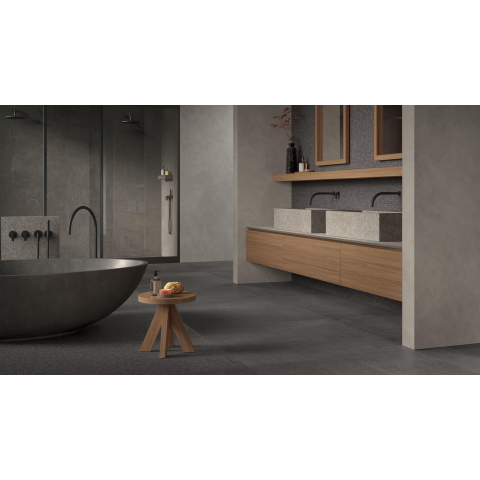 De Pomice-kleur met betonlook geeft jouw interieur een geraffineerde, natuurlijke uitstraling. Niet te donker, niet te licht: precies die zachte, warme nuance die modern oogt en toch tijdloos blijft. Dit maakt de tegel perfect om te combineren met zowel strakke designmeubels als met een meer landelijke of Scandinavische stijl. De vlakke, matte afwerking zorgt daarbij voor een rustige uitstraling op de wand en vloer, zonder hinderlijke glans of spiegeling. Je kunt deze mozaïek prachtig gebruiken als accent in combinatie met grotere Terra Crea tegels, of als subtiele eyecatcher in de douchehoek, achter het bad of als keukenspiegel. Zo breng je eenheid in je ontwerp en creëer je een luxe, doorlopende look in de hele ruimte.