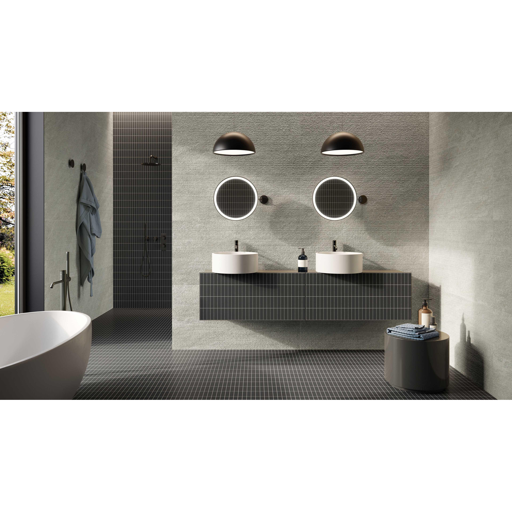 Deze decortegel heeft een natuursteenlook die is geïnspireerd op kwartsiet en oogt daardoor rijk en verfijnd zonder druk te worden. De greige kleur - een warme mix van grijs en beige - sluit moeiteloos aan op populaire badkamerkleuren zoals wit, taupe, zwart en houttinten. Het subtiele reliëf in het oppervlak geeft extra diepte en karakter, waardoor licht mooi over de tegel speelt en je wand of vloer echt gaat leven. Zo creëer je eenvoudig een spa-achtige sfeer, terwijl de rustige tekening voorkomt dat het geheel onrustig oogt. Ideaal als je een stijlvolle basis zoekt die jarenlang mooi blijft en niet snel uit de mode raakt.