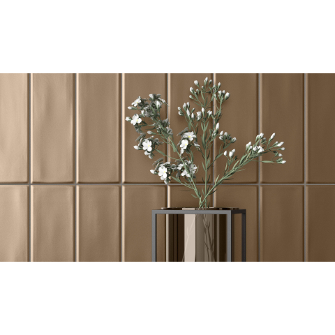 Met deze verfijnde wandtegel haal je een warme metaallook in huis, zonder in te leveren op het gemak van keramiek. Het compacte formaat is ideaal om speelse patronen te leggen in de badkamer, toilet of keuken, bijvoorbeeld in halfsteensverband of visgraat. Dankzij de matbruine brass-kleur en subtiele structuur past deze tegel prachtig bij moderne, industriële én hotel chique badkamers. Zoek je een accentwand in de douche, achter het bad of als stijlvolle achterwand bij het wastafelmeubel, dan is dit een slimme keuze. Ook in de keuken, achter het fornuis of als doortegeling naar de hal, komt deze tegel goed tot zijn recht. Juist in kleinere ruimtes werkt het slanke formaat ruimtelijk en krijg je een luxe, op maat gemaakte uitstraling.