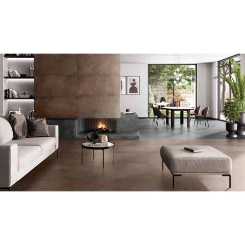 Met een prachtige koperen matte afwerking straalt deze tegel een onmiskenbare glans uit die de aandacht trekt en een gevoel van luxe toevoegt aan elke ruimte. De gerectificeerde randen zorgen voor een naadloze uitstraling en een moderne esthetiek die de perfecte aanvulling vormt op eigentijdse interieurs.