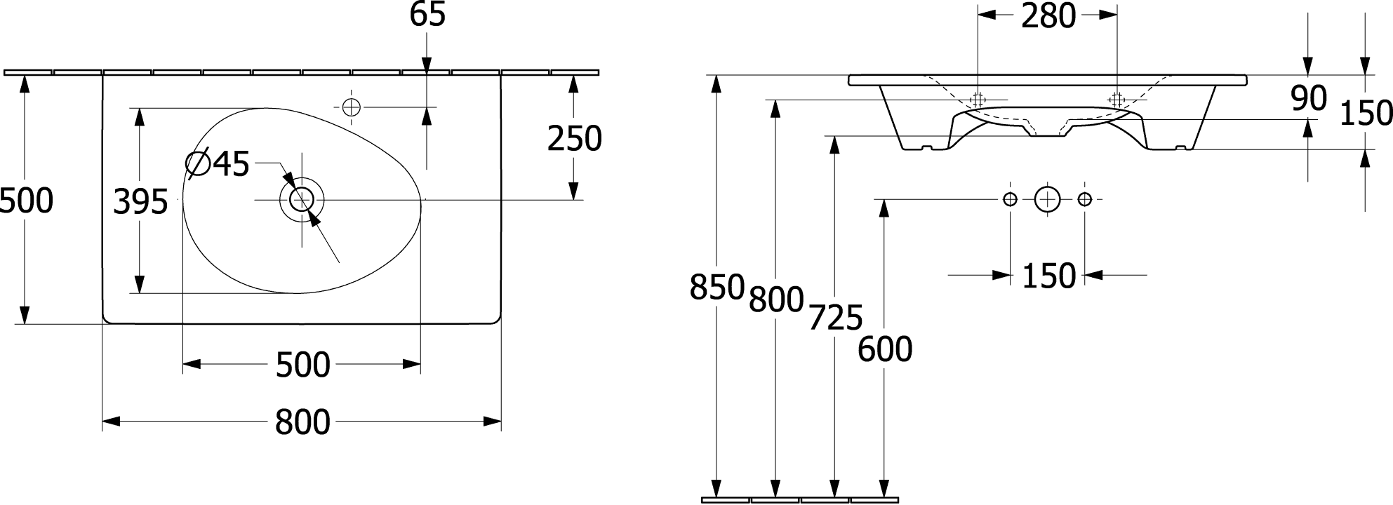 Villeroy & Boch Antao Meubelwastafel - 80 x 50 x 15 cm - Almond CeramicPlus - zonder overloop