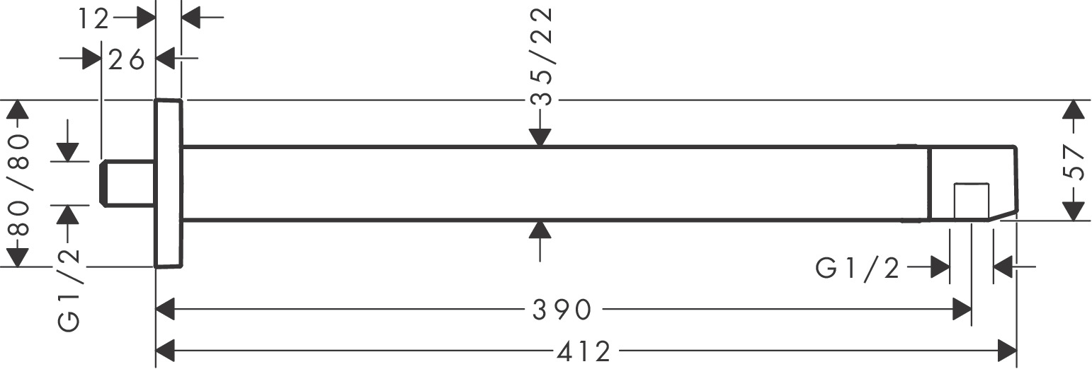 - Lengte van 39 cm voor optimale uitval en comfortabele douchepositie