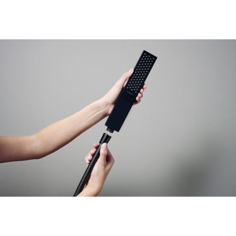 Het opvallende matzwarte design geeft je badkamer direct een moderne en luxe uitstraling. Deze handdouche is een echte blikvanger, die met zijn minimalistische vormgeving perfect aansluit bij eigentijdse badkamertrends. Het oppervlak blijft bovendien lang mooi dankzij de hoogwaardige afwerking die eenvoudig schoon te houden is. Zo combineer je moeiteloos functionaliteit met een stijlvolle look die jouw persoonlijke smaak weerspiegelt.