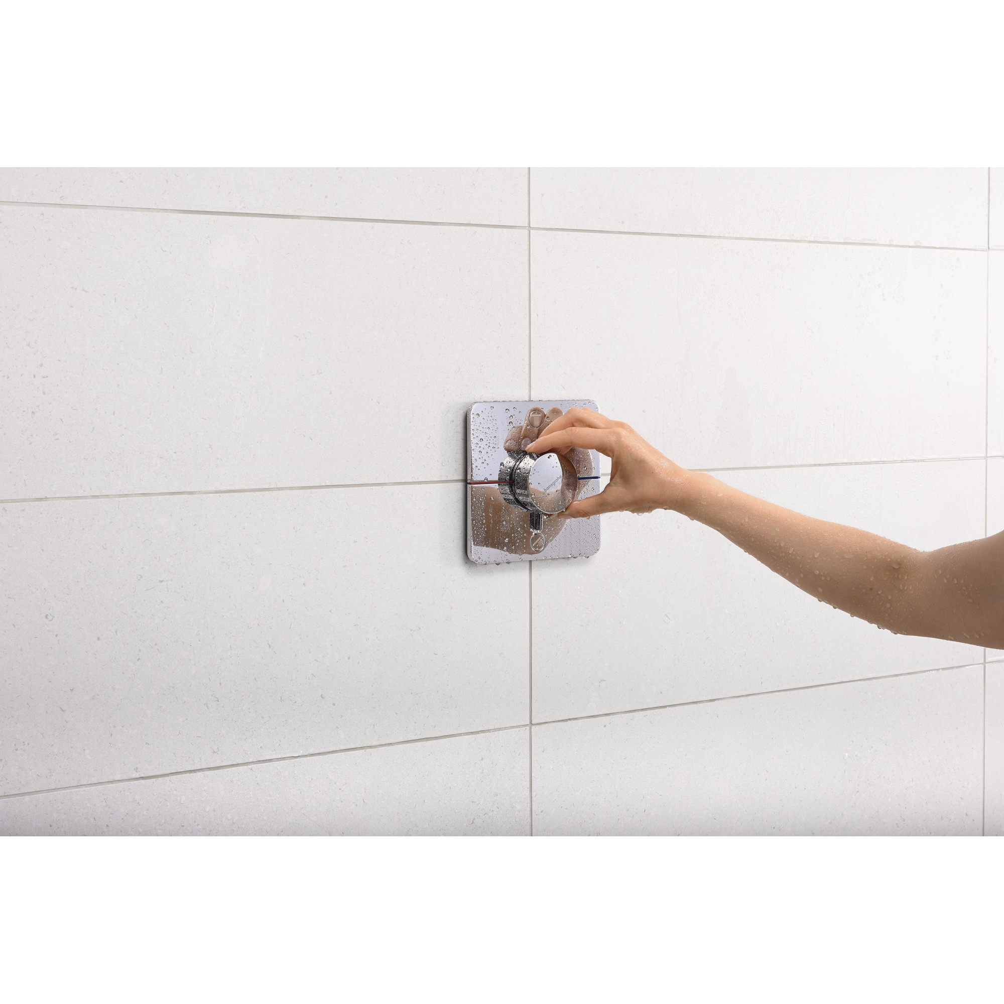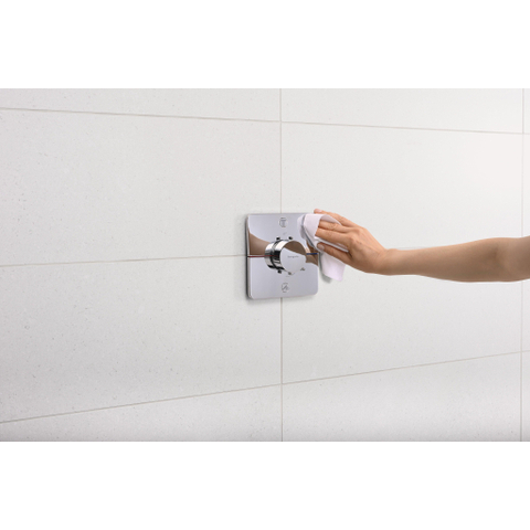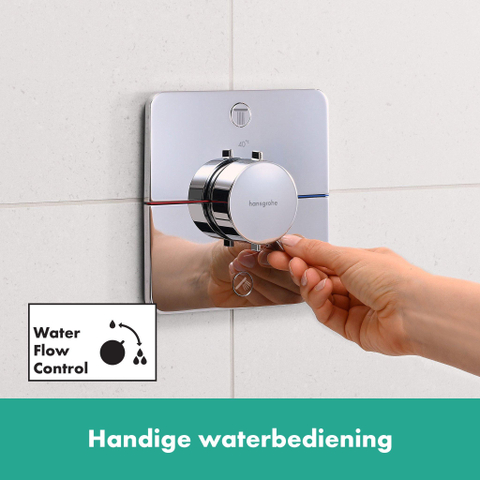De bediening is ontworpen met jouw gemak in gedachten. De grote Select-knoppen maken het aan- en uitzetten van het water eenvoudig en comfortabel, terwijl je met de slanke greep de waterhoeveelheid nauwkeurig regelt. Dankzij de mogelijkheid om twee functies gelijktijdig te gebruiken, geniet je van een veelzijdige douche-ervaring die je volledig naar eigen wens kunt aanpassen. De thermostaat houdt de temperatuur constant, wat niet alleen comfort maar ook energiebesparing oplevert. Bovendien is het onderhoud eenvoudig dankzij de praktische waterstop, waardoor schoonmaken snel en moeiteloos gaat.Kenmerken: