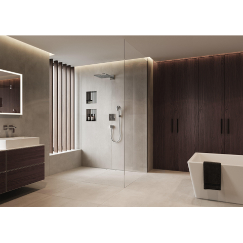 Met deze inbouwthermostaat geef je jouw badkamer een moderne en luxe uitstraling die je elke dag opnieuw zal verrassen. Het slanke, bijna gewichtloze design zorgt ervoor dat de kraan naadloos opgaat in de wand, waardoor je meer ruimte ervaart in je douche of bad. Dankzij het innovatieve gebruiksgemak bedien je moeiteloos twee functies, zoals de hoofd- en handdouche, met één simpele druk op de grote, intuïtieve knoppen. De temperatuur blijft constant, zodat je zorgeloos kunt genieten van een comfortabele douchebeurt. Dit product combineert stijl met functionaliteit en maakt van je badkamer een plek waar design en gebruiksgemak samenkomen.