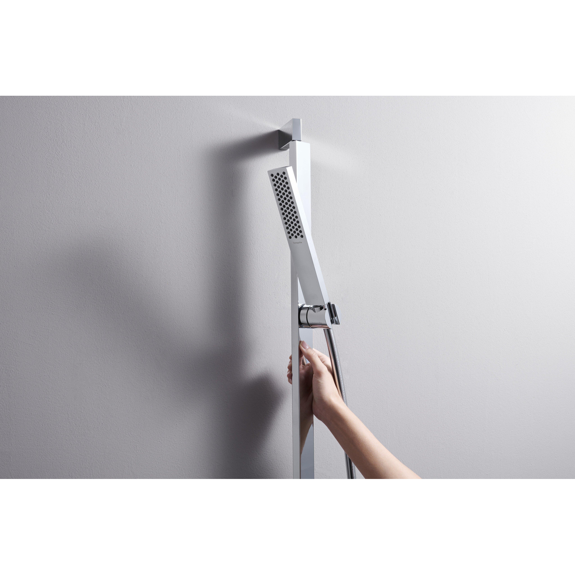 Ervaar een nieuwe dimensie van verfrissing en comfort in jouw badkamer met deze complete doucheset. Het minimalistische design voegt een elegante, moderne uitstraling toe die moeiteloos past in vrijwel elk badkamerinterieur. Dankzij de innovatieve technologie geniet je van een zachte, omhullende waterstraal die je elke dag opnieuw een moment van ontspanning en energie geeft. Of je nu ’s ochtends een oppepper zoekt of ’s avonds wilt ontspannen, deze set zorgt voor een aangename douche-ervaring die je badkamer transformeert tot jouw persoonlijke wellnessruimte. De hoogwaardige afwerking in chroom zorgt niet alleen voor een tijdloze look, maar ook voor een oppervlak dat eenvoudig schoon te houden is en lang mooi blijft.