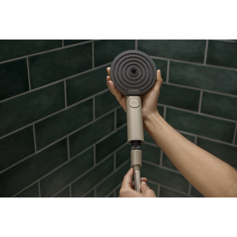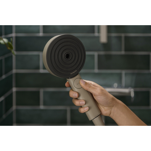De unieke zandkleurige afwerking met een lichte structuur geeft deze handdouche een natuurlijke en eigentijdse uitstraling. Het is een origineel alternatief voor het traditionele chroom en past perfect in moderne badkamers waar je kiest voor een warme, uitnodigende sfeer. Het design is niet alleen mooi om te zien, maar ook ergonomisch vormgegeven, waardoor de douchekop prettig in de hand ligt. Zo geniet je niet alleen van het visuele aspect, maar ook van het gebruiksgemak tijdens elke douchebeurt.